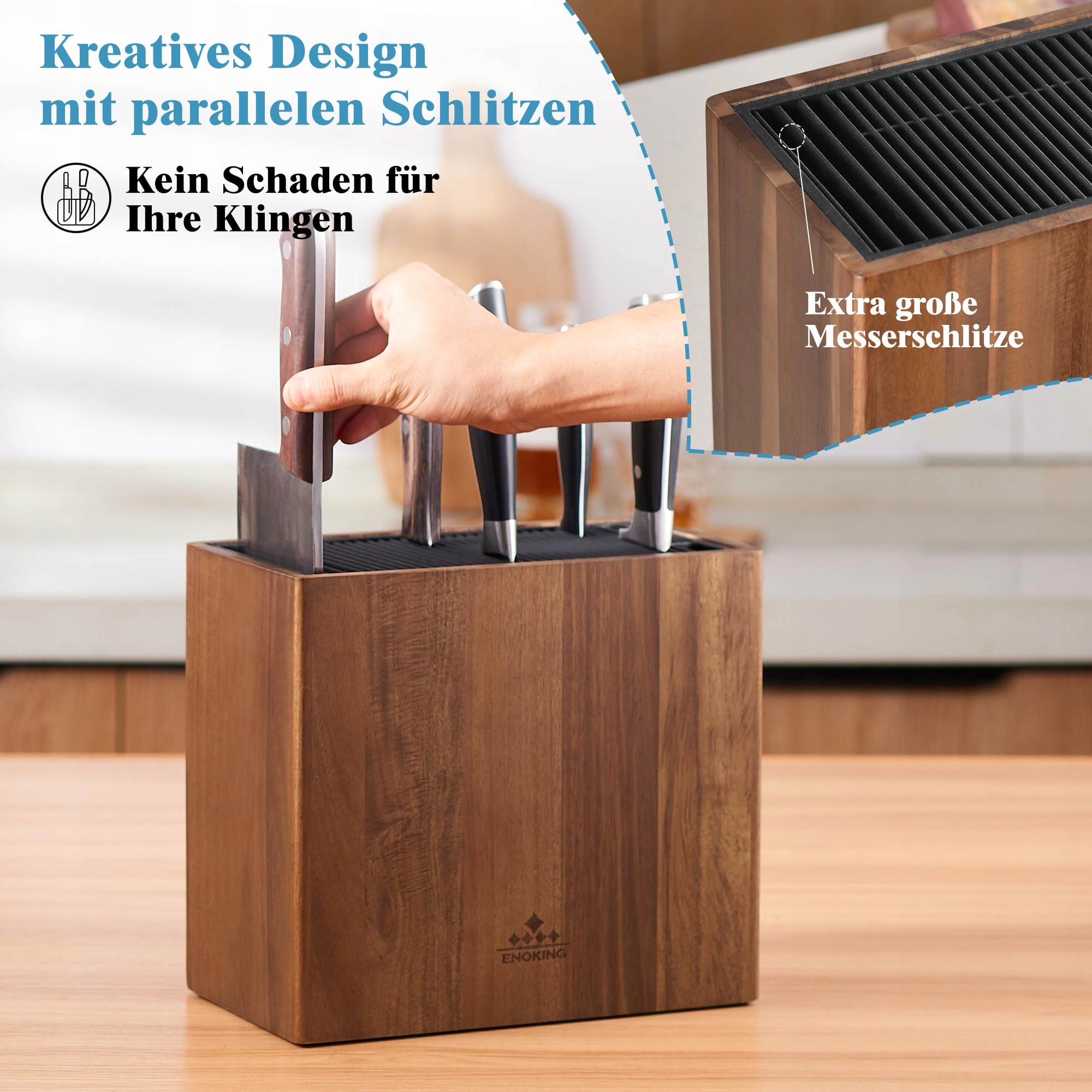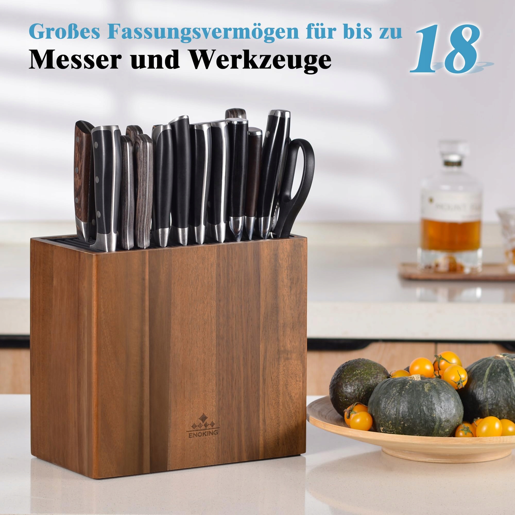 ENOKING Blok Na Noże Akacja Uniwersalny Stojak Z Pokrywą Na Noże | Premium Supply