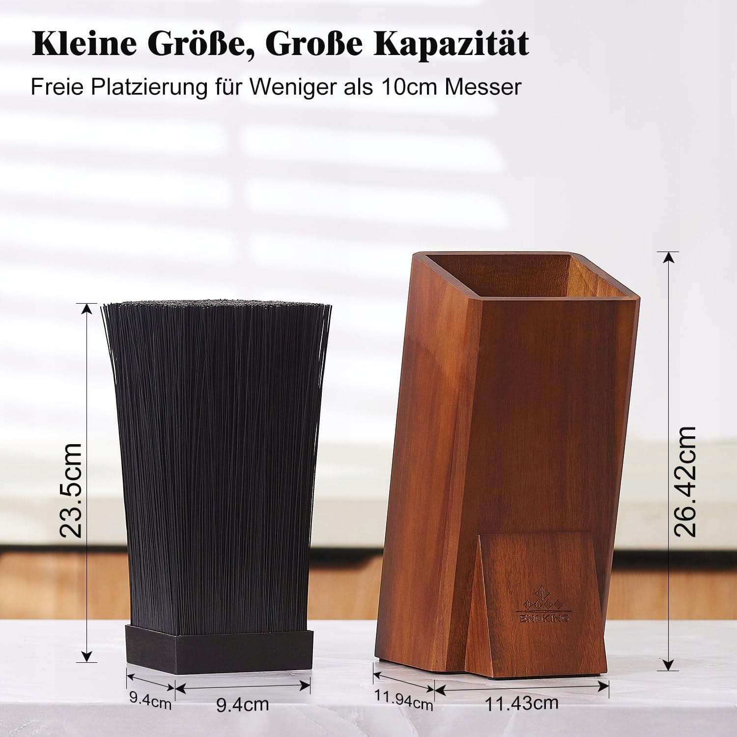 ENOKING drewniany blok na noże z akacji z odpinanymi plastikowymi włóknami, uniwersalny blok na noże do kuchni