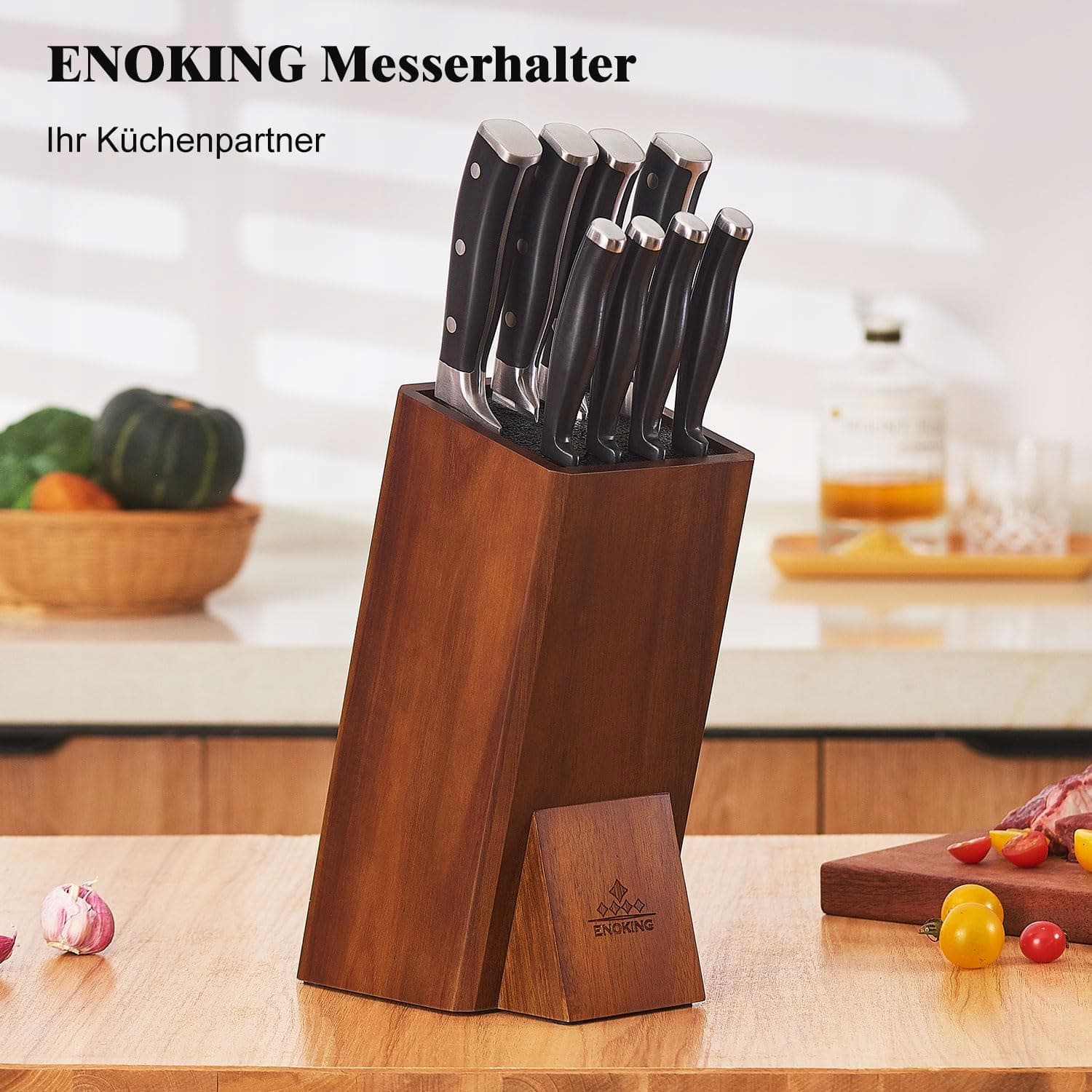 ENOKING Uniwersalny blok na noże kuchenne z wkładami akacjowymi | Premium Supply