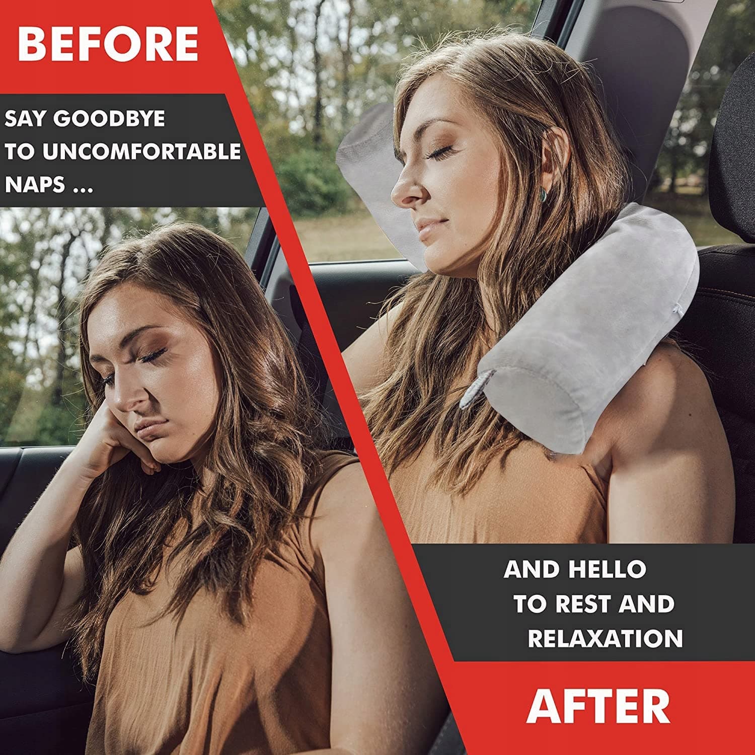 Świetna poduszka podróżna: Różne pozycje mogą być ustawione, aby wspierać głowę we wszystkich kierunkach i zrelaksować szyję w podróży, nawet bez nachylania siedzenia.