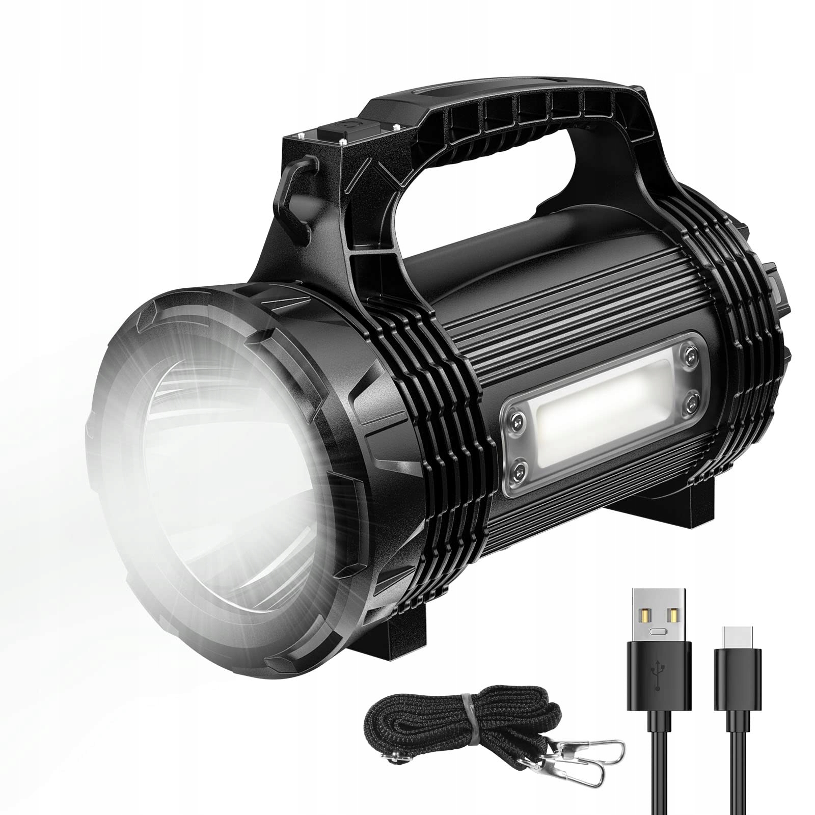 [Zestaw latarek]Reflektor LED o mocy 1200 lumenów jest dostarczany z regulowanym paskiem na ramię (odpinanym). Wygodny uchwyt i odpowiednia waga sprawiają, że jest dość poręczny, gdy idziesz łowić, eksplorować, szukać itp. Lista pakowania: 1x latarka; 1x pasek na ramię; 1x kabel typu C; 1x instrukcja obsługi; 1x pudełko kolorowe.
