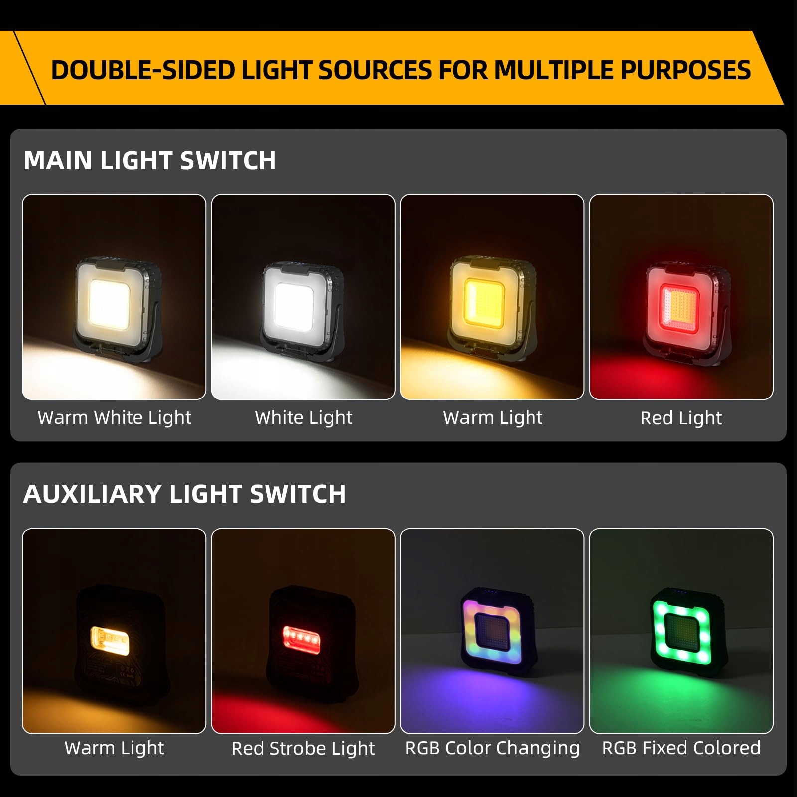 ERAY Przenośna lampa robocza - Oświetlenie dwustronne 1000 lumenów z światłem RGB, LED reflektor akumulatorowy 5000mAh, 8 trybów, IPX4 ochrona przed wodą & magnetyczna podstawa do naprawy samochodów, budowy, kempingu, awarii