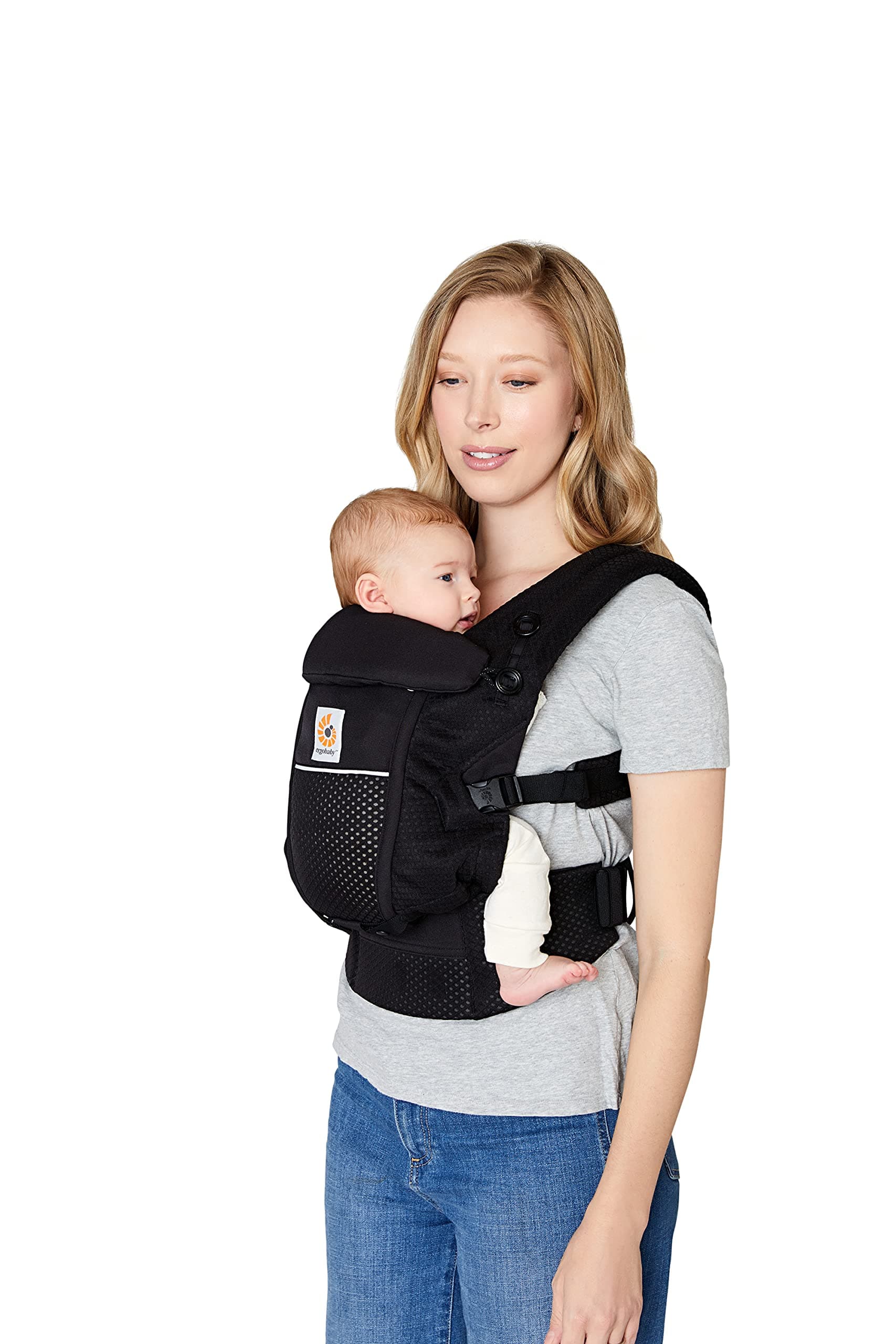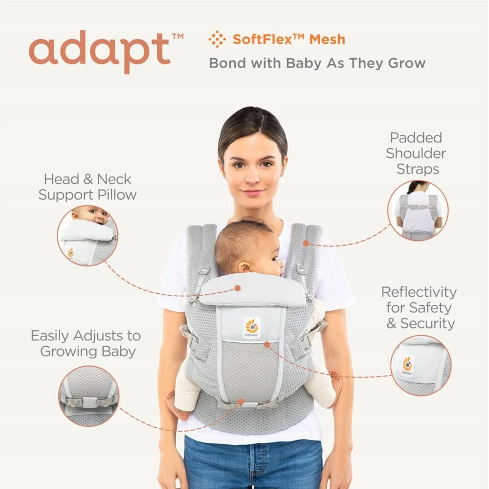 Ergobaby Adapt nosidełko dla niemowląt od narodzin, 3 pozycje SoftFlex Mesh ergonomiczne nosidełko na brzuch, nosidełko na plecy, torba do noszenia dzieci, Onyx Black