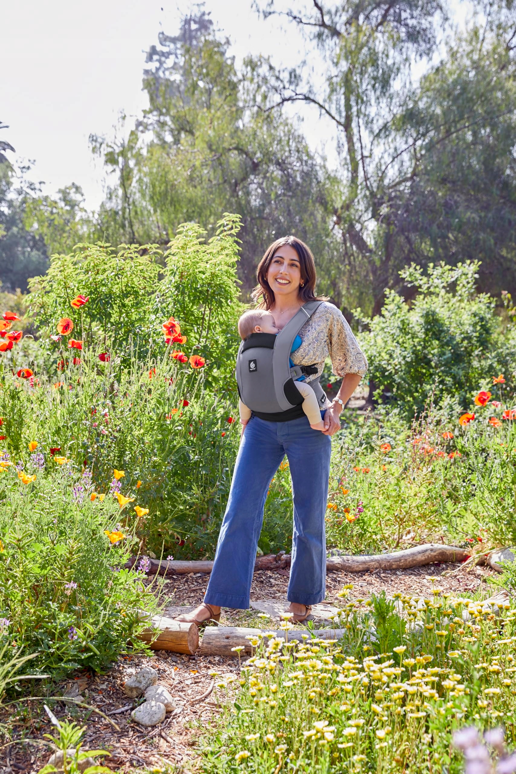 Ergobaby Away nosidełko dla dzieci, nosidełko podróżne dla niemowląt i małych dzieci (5,4-15,9 kg), nosidełko na brzuch i plecy, torba na dziecko, szary grafitowy