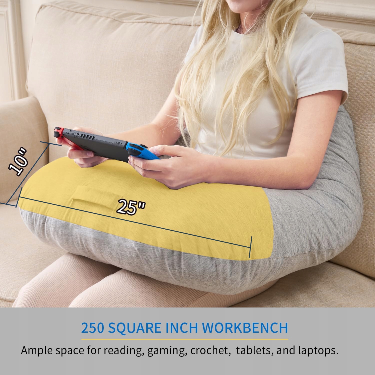 Poduszka do czytania do gier, ergonomiczne podparcie ramienia do grania, szydełkowania, poduszka pod laptopa do siedzenia w łóżku i na sofie, poduszka korekcyjna do postawy na kolana, zdejmowany pokrowiec do prania (chłodzący szary)