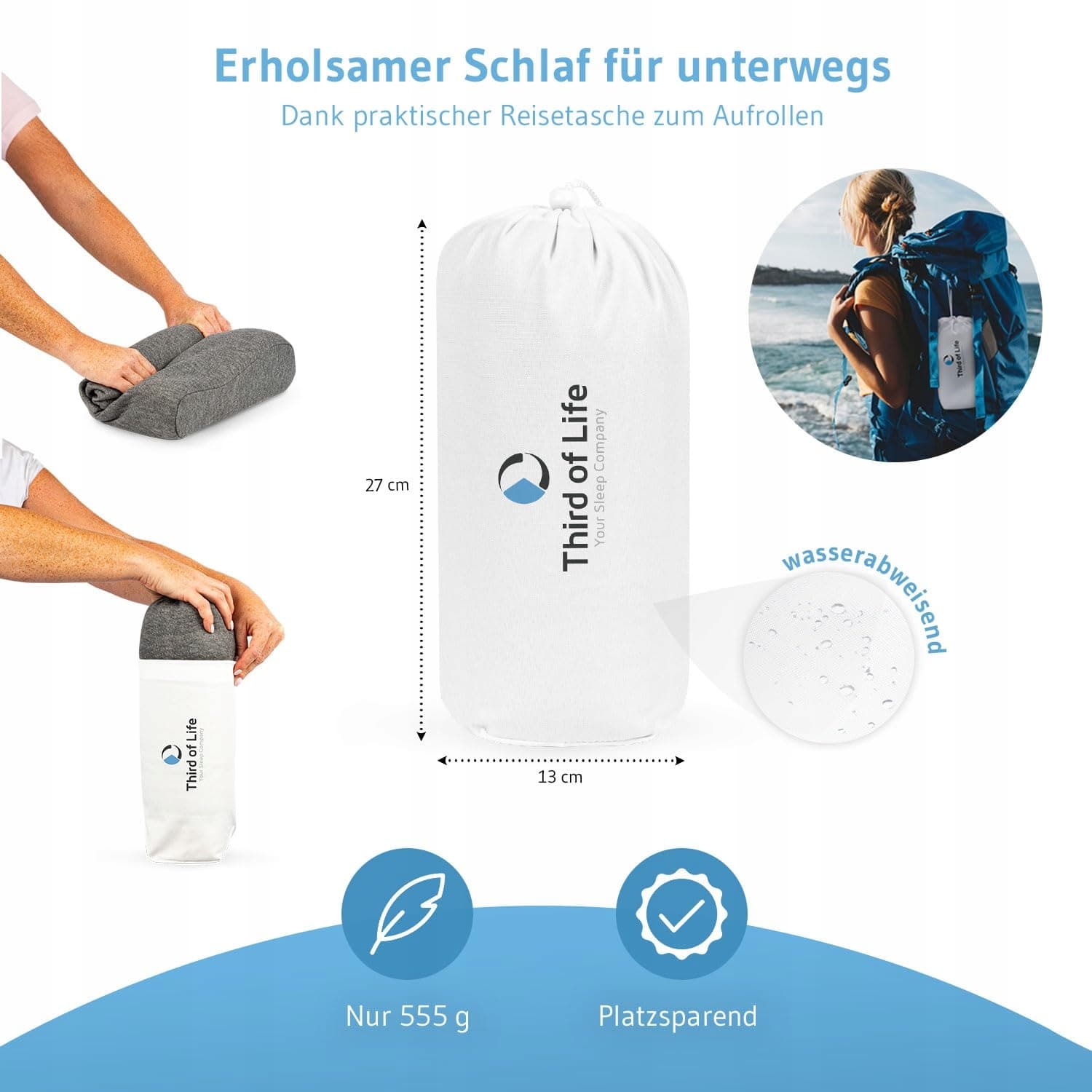 ➥ W ZESTAWIE TORBA PODRÓŻNA – kompaktowa, wodoodporna torba podróżna umożliwia oszczędne przechowywanie i chroni poduszkę podróżną przed wilgocią i zabrudzeniami.