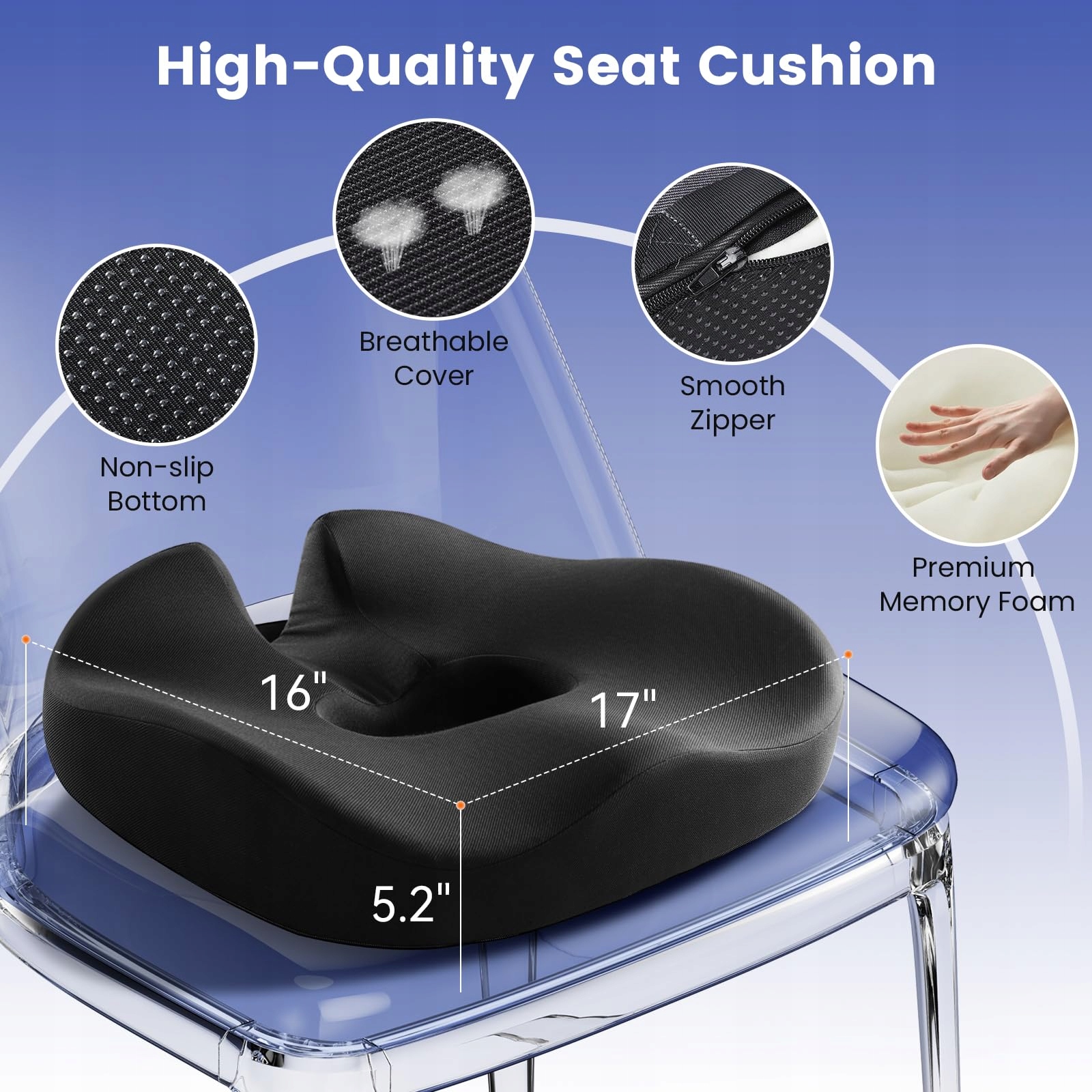 ERGONOMICZNE PODUSZKI DONUT Z PIANKI MEMORY DO KRZESŁA BIUROWEGO AUTA DOMU | Premium Supply
