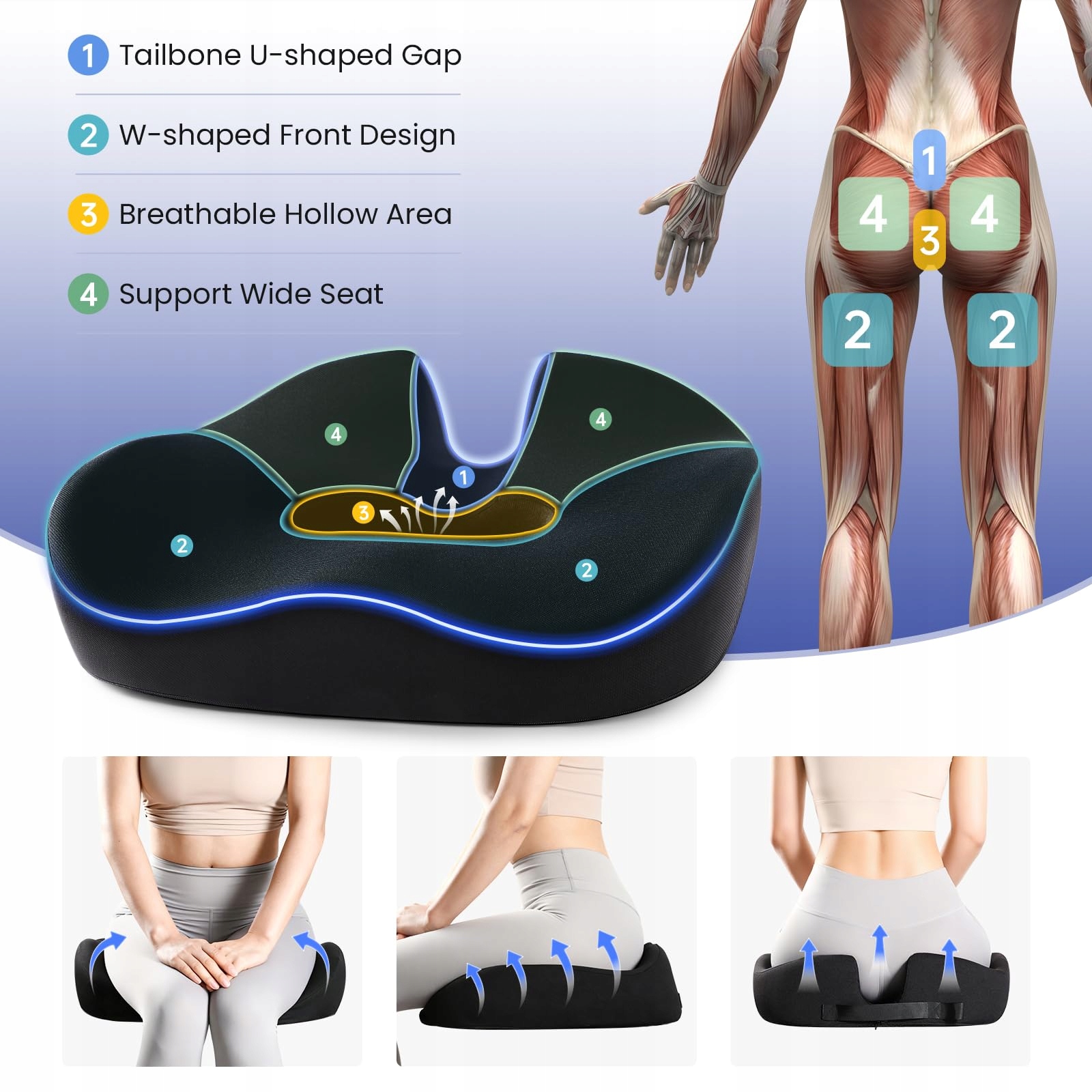 【Kształt w formie 'U', całkowity komfort】Projekt poduszki w kształcie litery U pozostawia miejsce dla dolnej części pleców. Tylny, w kształcie litery U, element delikatnie otacza biodra, zapewniając dodatkowy komfort. Jednocześnie ergonomicznie wyprofilowana powierzchnia podtrzymuje uda i sprawia, że nogi pozostają zrelaksowane nawet podczas długiego siedzenia