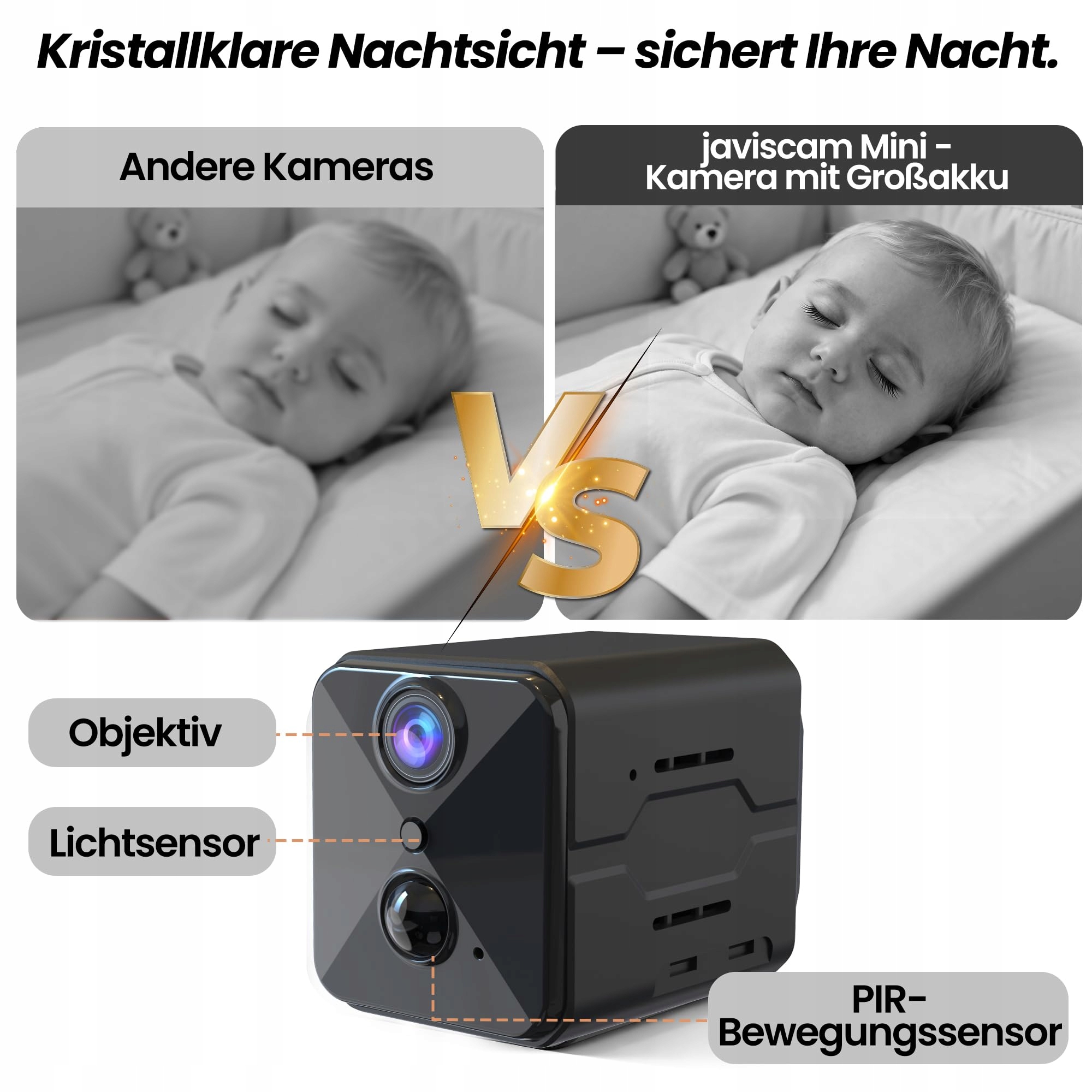 🔋【Kamera do monitoringu z niezwykle długim czasem pracy na baterii】 pierwsza mini kamera z bardzo dużym akumulatorem do użytku wewnętrznego. Z pojemnością 2800 mAh wytrzymuje po jednym ładowaniu przez tygodnie i zapewnia niezawodną, całodobową ochronę nawet podczas dłuższej nieobecności.