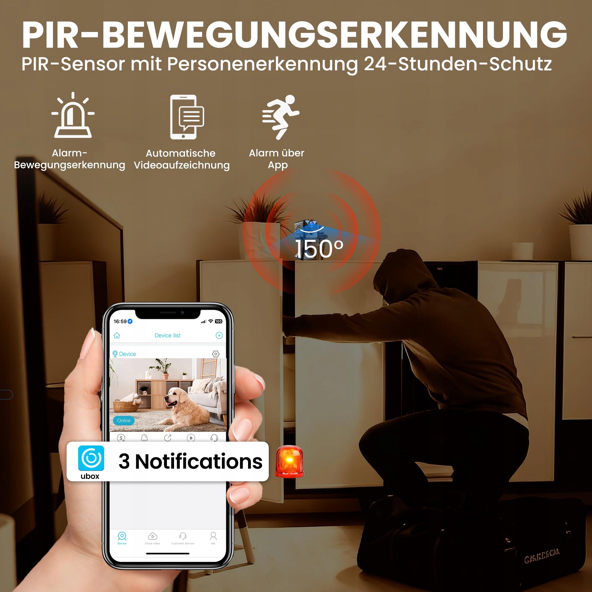 🔒【Osobista ochrona z własną, niezależną aplikacją】 Ta mini kamera do monitoringu oferuje dopasowane bezpieczeństwo dla Twojego domu. Za pomocą samodzielnej aplikacji możesz zawsze mieć na oku zwierzęta, dzieci, personel domowy lub seniorów. Aplikacja działa stabilnie i nie jest zakłócana przez inne programy. Obsługuje podłączenie kilku kamer jednocześnie, dzięki czemu zawsze masz pełen przegląd.