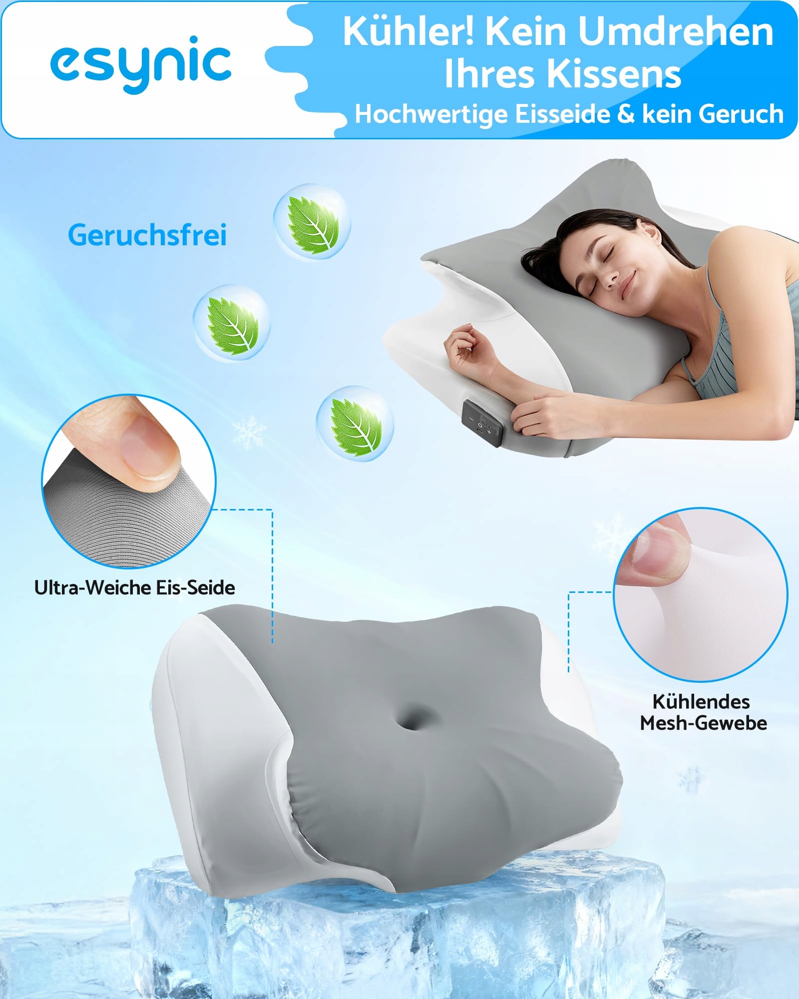 eSynic Poduszka Memory Foam 32 Białe Szumy Sterowana Aplikacją Zdejmowany, Pralny Pokrowiec Poduszka Antysnurkowa dla Śpiących na Boku, na Plecach i na Brzuchu