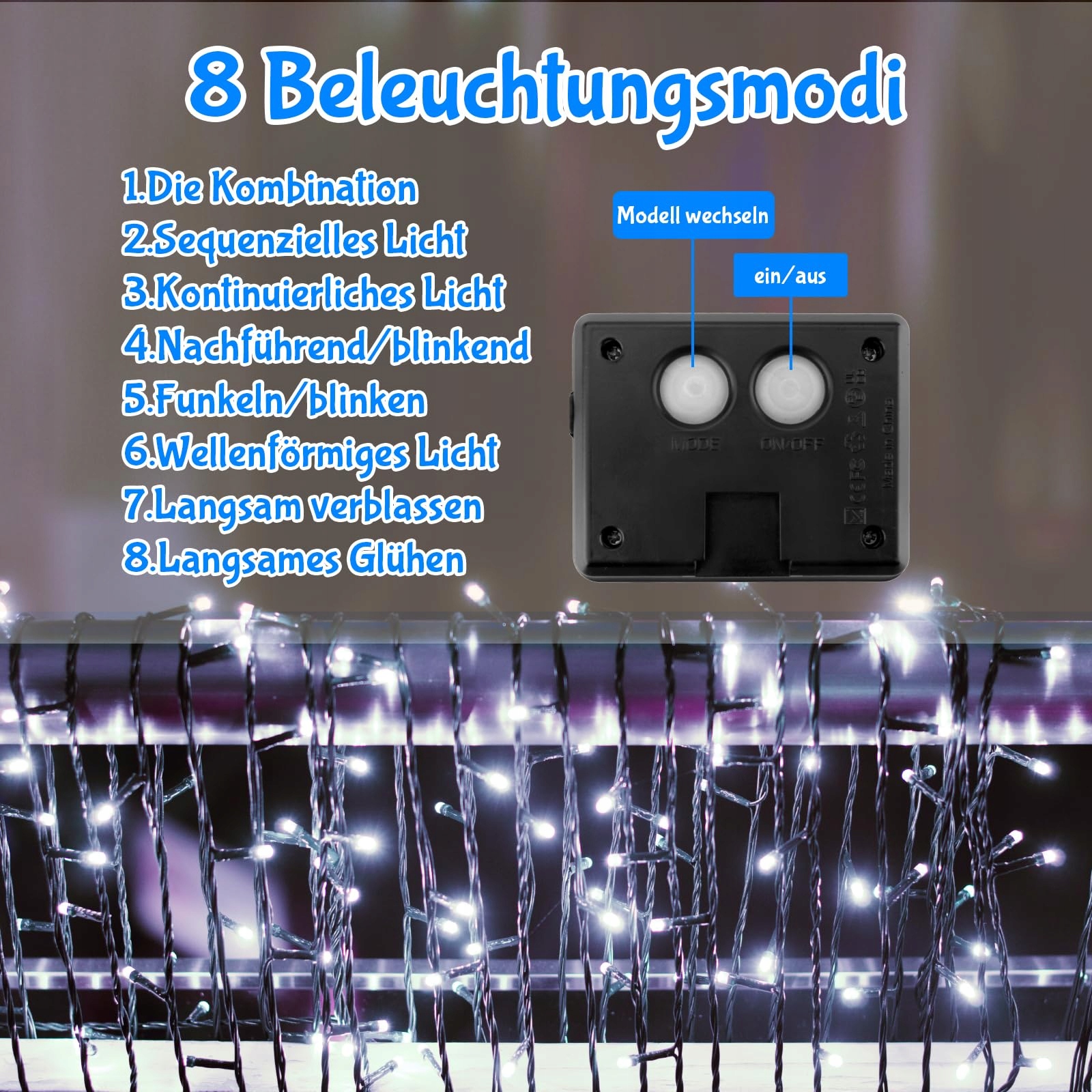Etopgo Solarne Lampki Zewnętrzne 12M 120LED Lampki Solarne Zewnętrzne Odporne na Warunki Atmosferyczne 8 Trybów IP65 Wodoodporne Lampki Solarne Zewnętrzne na Ogród, Balkon, Podwórko Wewnętrzne/Zewnętrzne Dekoracje (Zimna Biała)