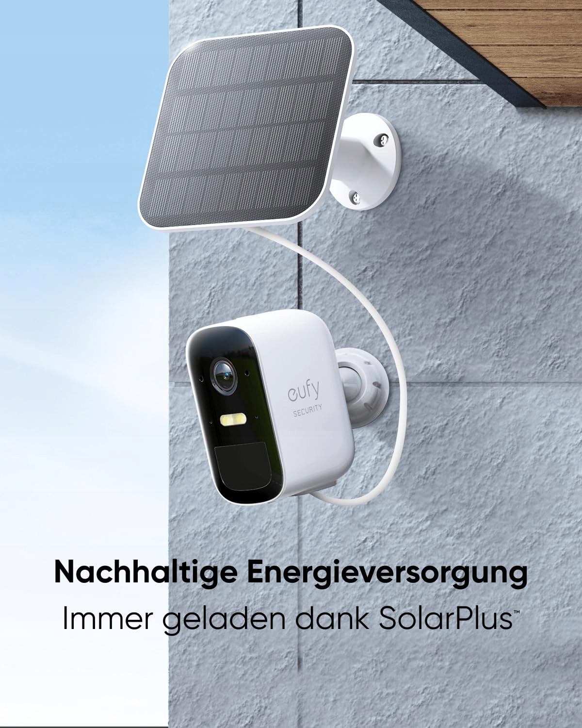 eufy Security eufyCam 2C Pro zestaw 2 kamer, kamera zewnętrzna solarna z rozdzielczością 2K, kompatybilność z HomeKit, wodoodporność IP67, kolorowe widzenie nocne, bez opłat abonamentowych