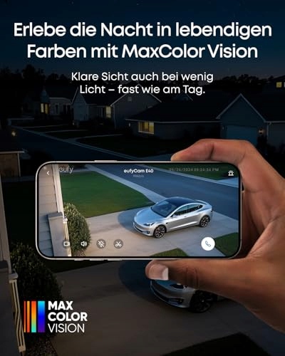 Widoczność dzienna także w nocy: Dzięki 2K QHD i MaxColor Vision ta kamera dostarcza żywe, wierne kolorom nagrania monitorujące – nawet w ciemności otrzymujesz obrazy jak za dnia.