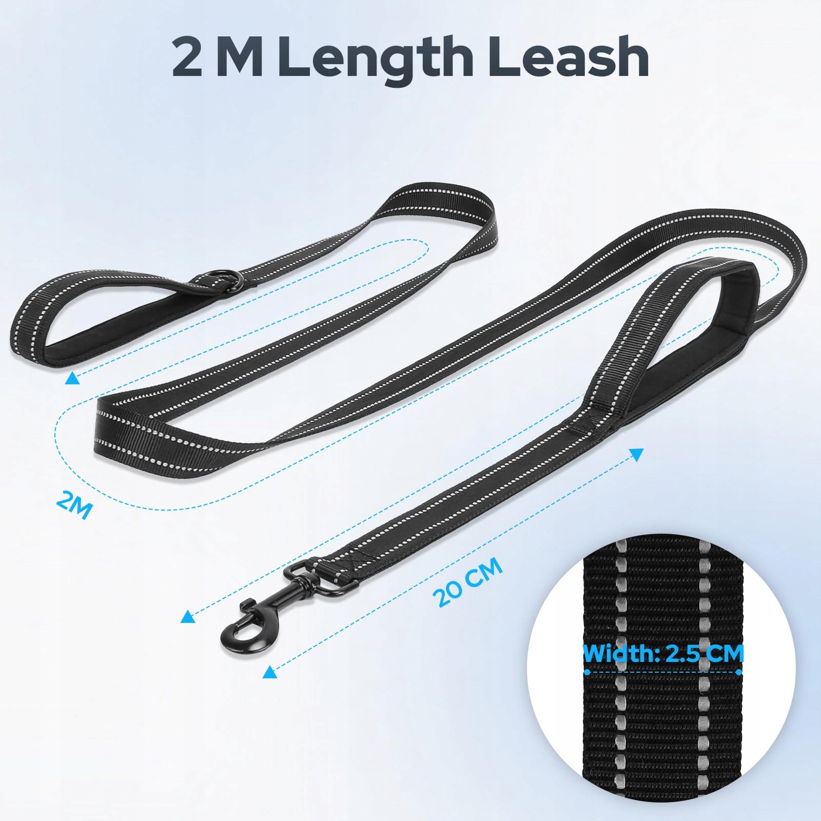 Euqvunn smycz dla psa 2m×2,5cm z dwoma wyściełanymi uchwytami | Regulowana długość | Odblaskowa nylonowa smycz dla dużych i średnich psów do 50KG | Smycz kontrolna i treningowa | Czarna