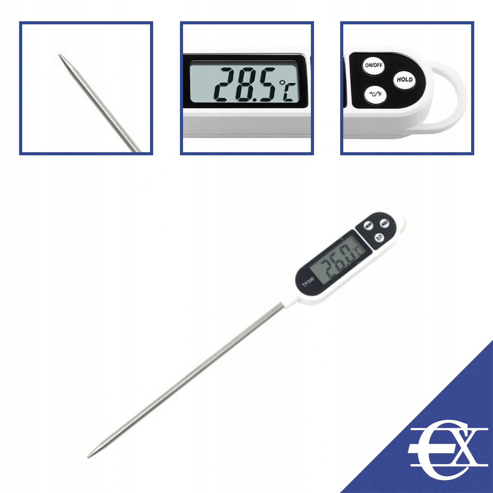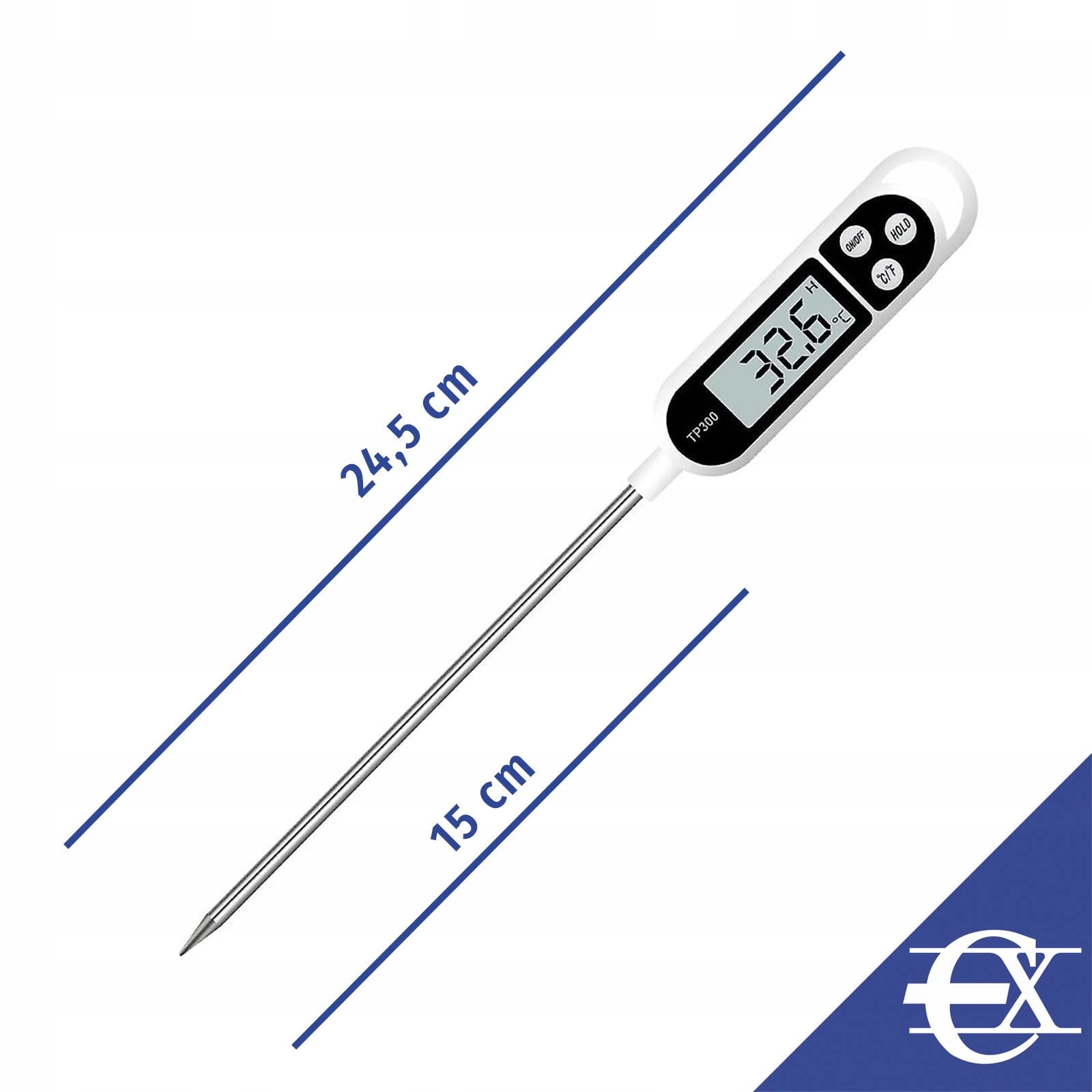 �【 GŁÓWNE CECHY 】→ Cyfrowy termometr do pieczenia z zakresem pomiarowym od -50 do +300 ºC. Igła ze stali nierdzewnej (15 cm długości i 5 mm grubości). Izolowany uchwyt z tworzywa sztucznego. Ochrona igły w zestawie. Jednostki temperatury: ºC i F.📐