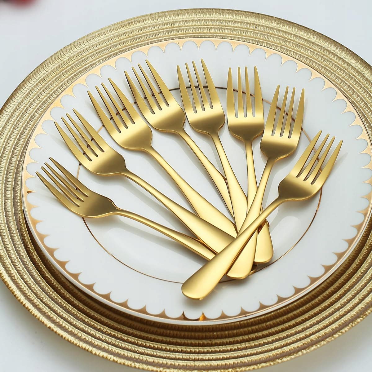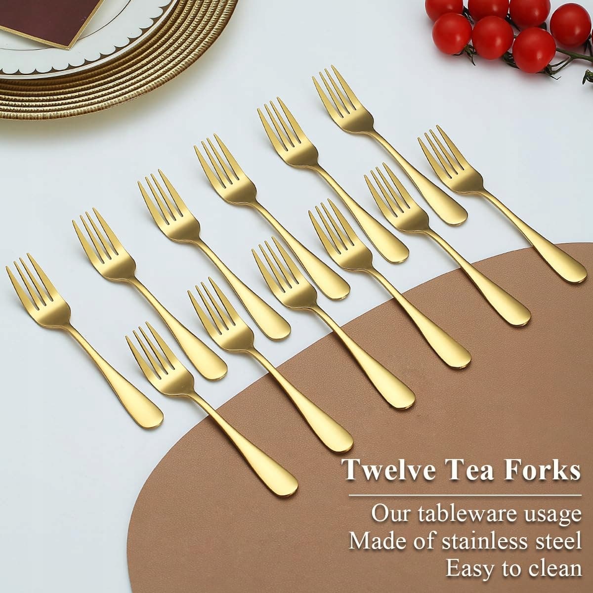 EVANDA Złote Widelczyki Deserowe 12 Sztuk Stal Nierdzewna Titan Dla Domu