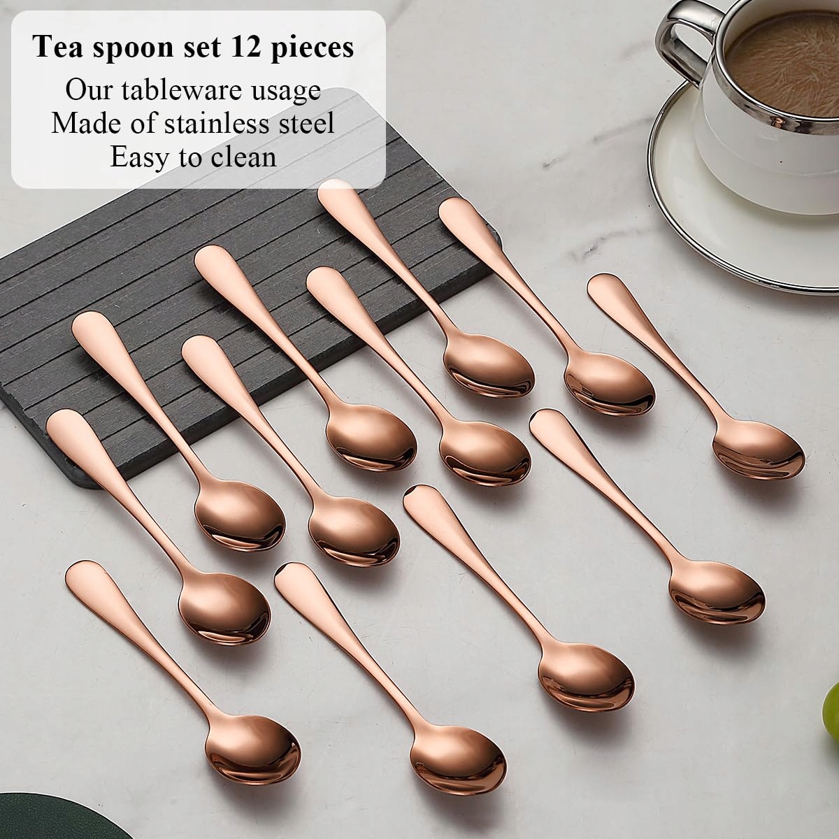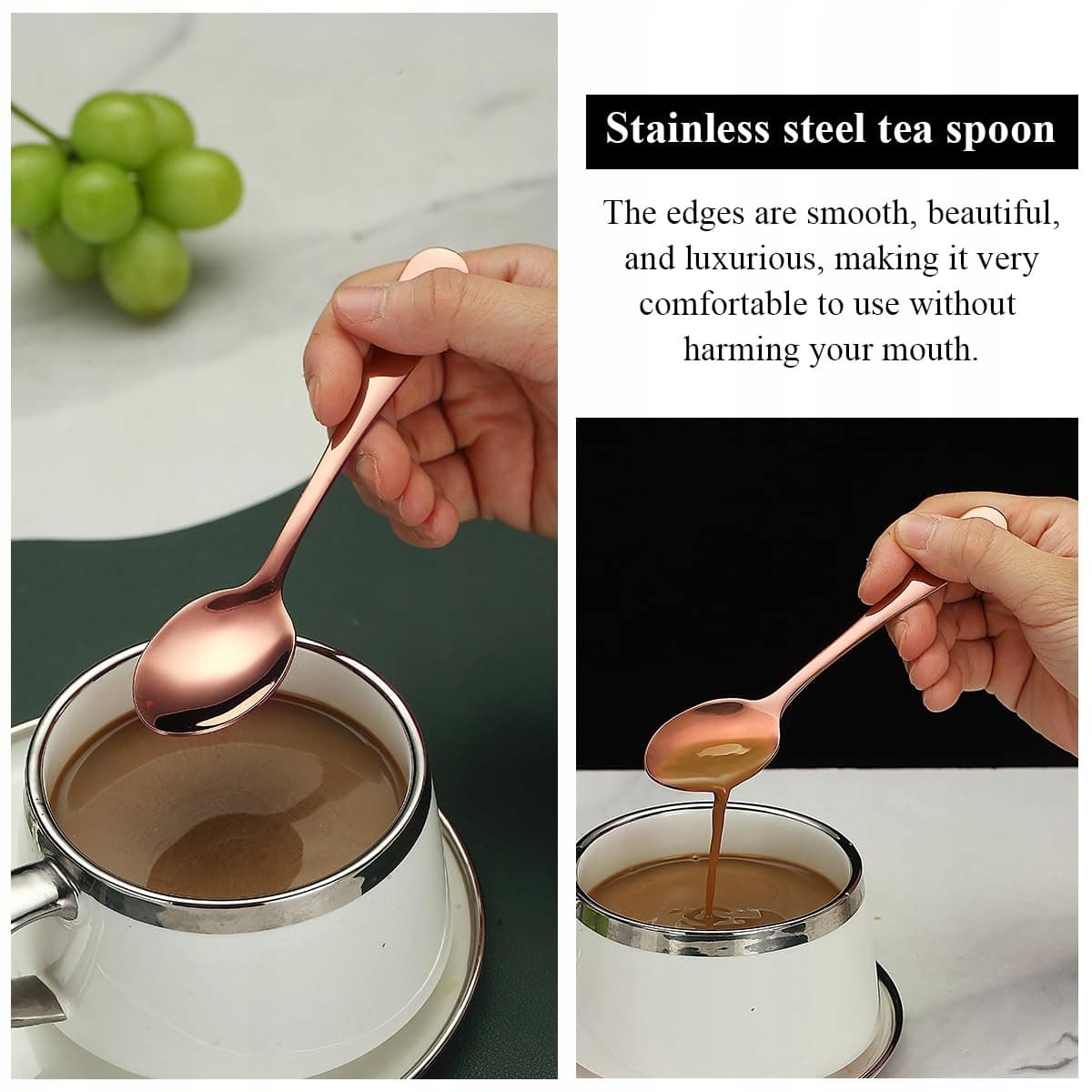 WYSOKA JAKOŚĆ: Łyżeczki wykonane są z bezpiecznej dla żywności stali nierdzewnej, odpornej na rdzę, mocnej i trwałej, niełatwe do wygięcia, na lata codziennego użytku. Nasze łyżeczki do herbaty są wielofunkcyjne i mogą być używane jako łyżeczki do herbaty, łyżeczki do kawy, łyżeczki do latte i inne.