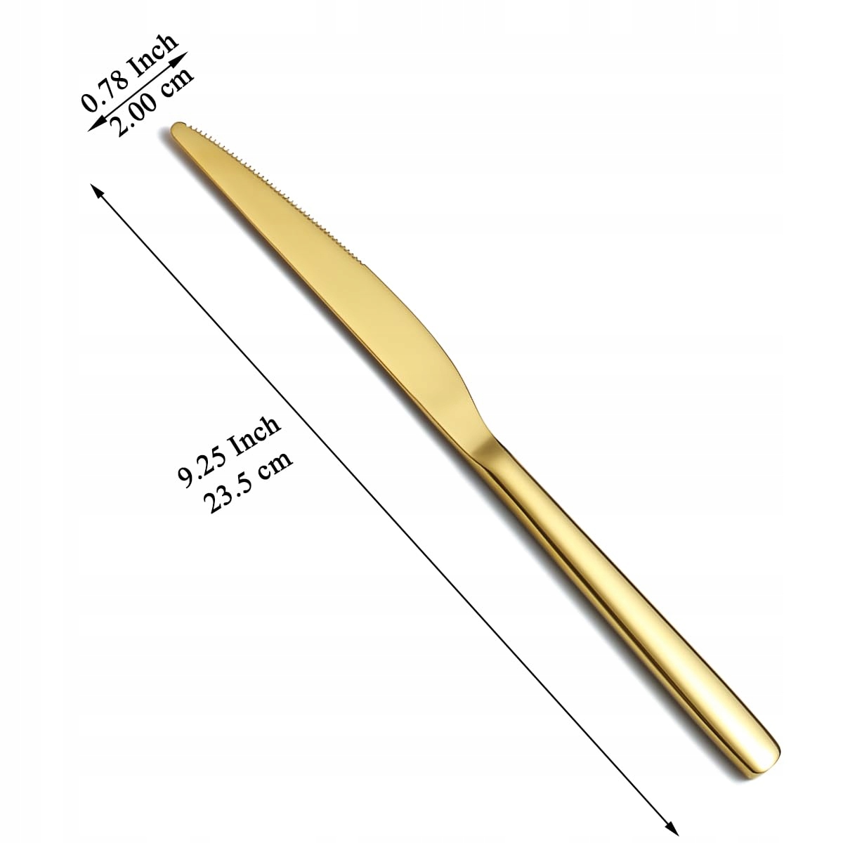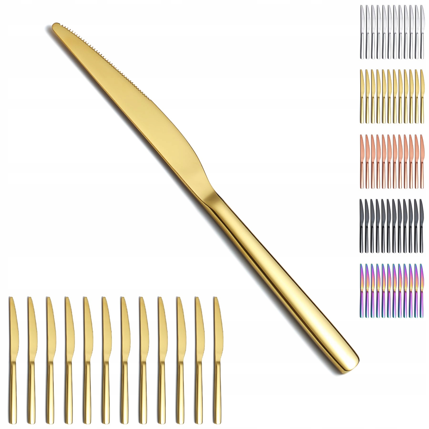 Zestaw 12 noży stołowych Evanda Gold, powłoka tytanowa złota, stal nierdzewna, noże do kolacji, noże do steków, zestaw sztućców, noże do masła, zestaw srebrnych sztućców, nadające się do mycia w zmywarce