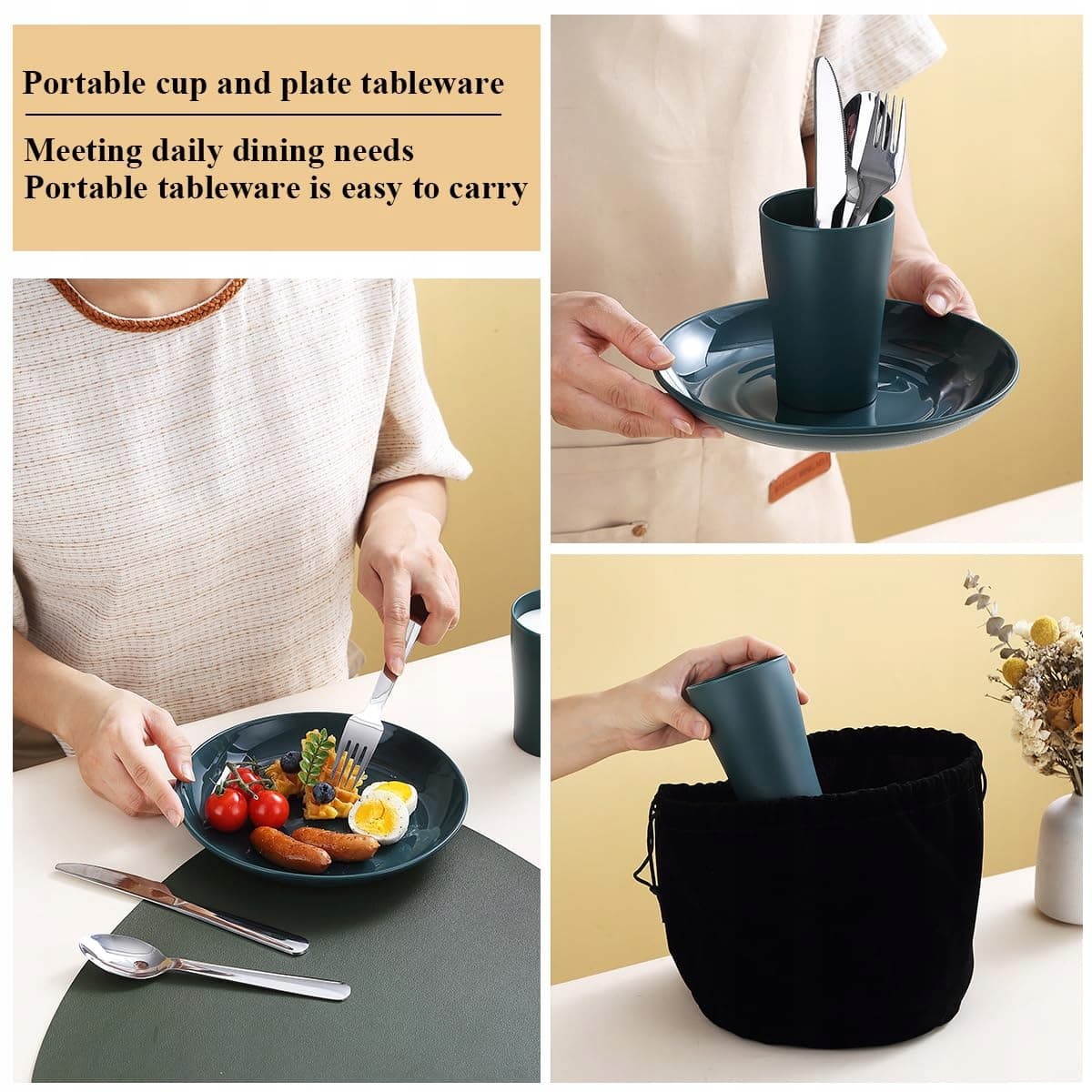WYSOKA JAKOŚĆ: Talerze i kubki tego zestawu kempingowego wykonane są z materiału PP, wolne od BPA, nietoksyczne i bezwonne. Są lekkie, niezniszczalne i wytrzymałe, sztućce ze stali nierdzewnej wykonane są z wysokiej jakości stali nierdzewnej, są solidne i trwałe.