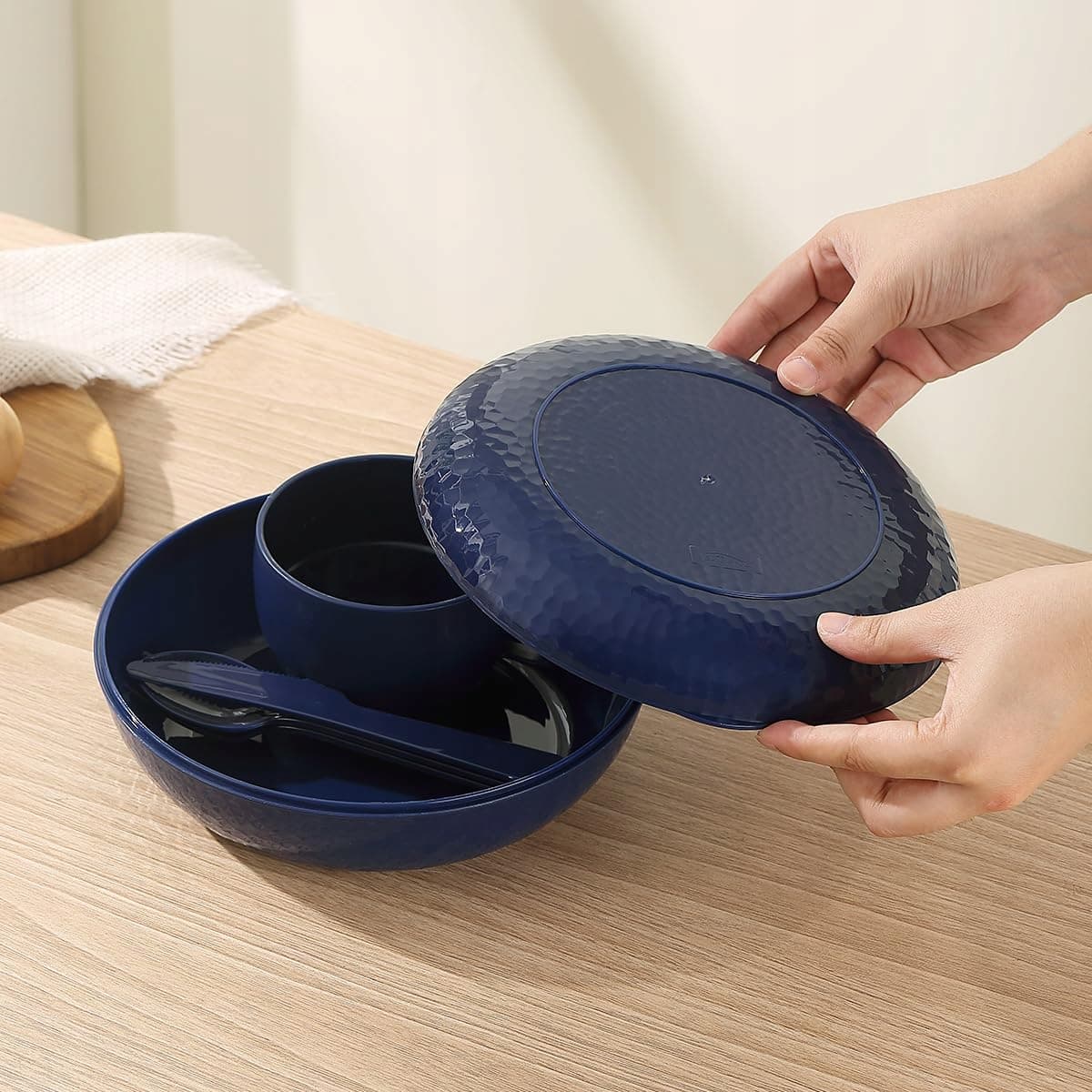 3. Lekka i trwała konstrukcja: Wykonany z wysokiej jakości tworzywa sztucznego wolnego od BPA, ten zestaw naczyń jest niezwykle lekki, a jednocześnie zaprojektowany tak, aby wytrzymać trudy użytkowania na zewnątrz. Jest odporny na pęknięcia i złamania, dzięki czemu jest niezawodnym towarzyszem wszystkich Twoich przygód.