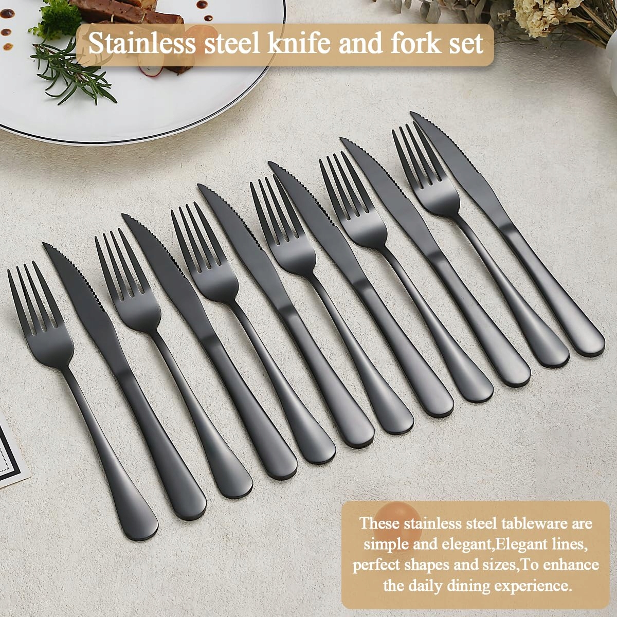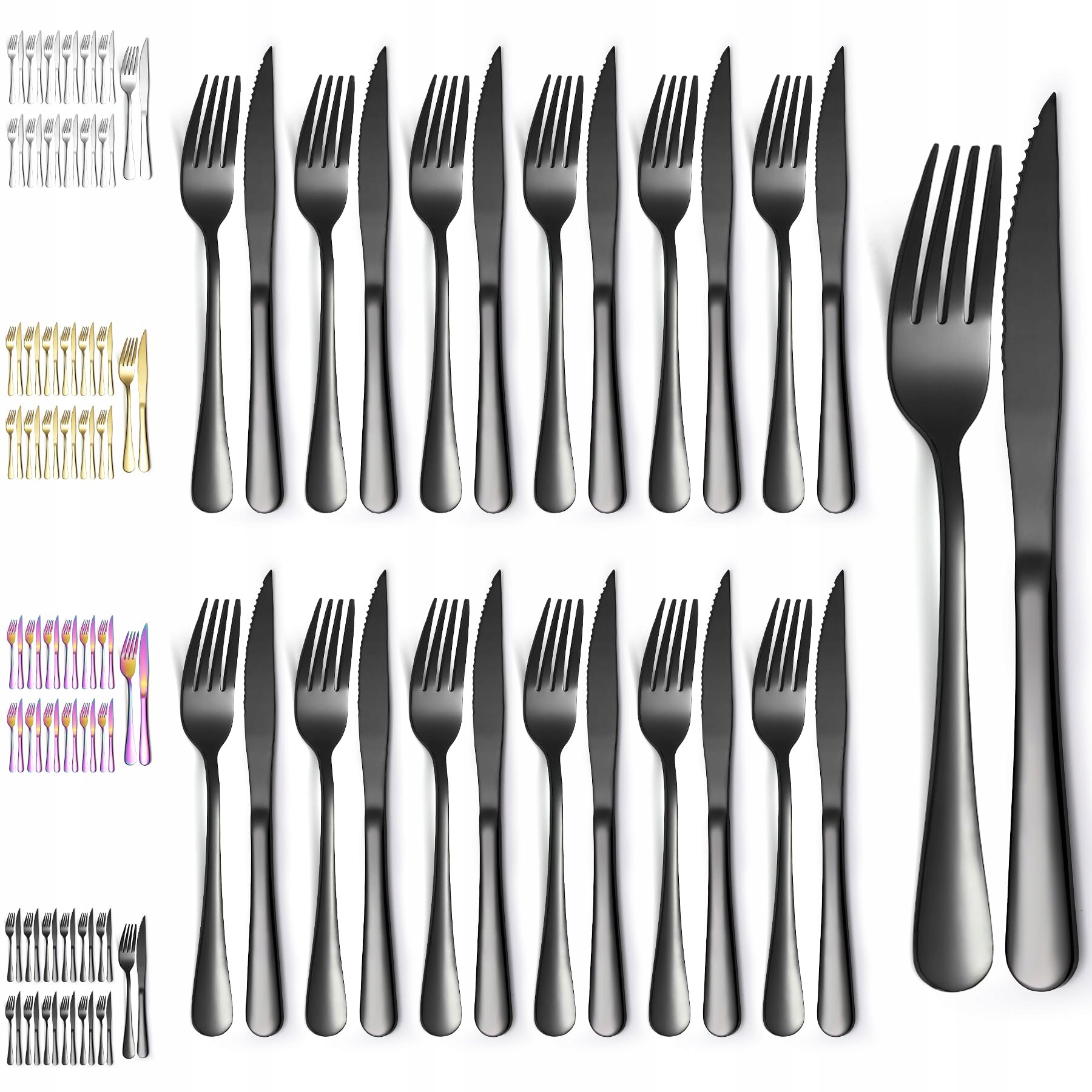 24-częściowy zestaw noży do steków: zawiera 12 noży do steków, 12 widelców stołowych.