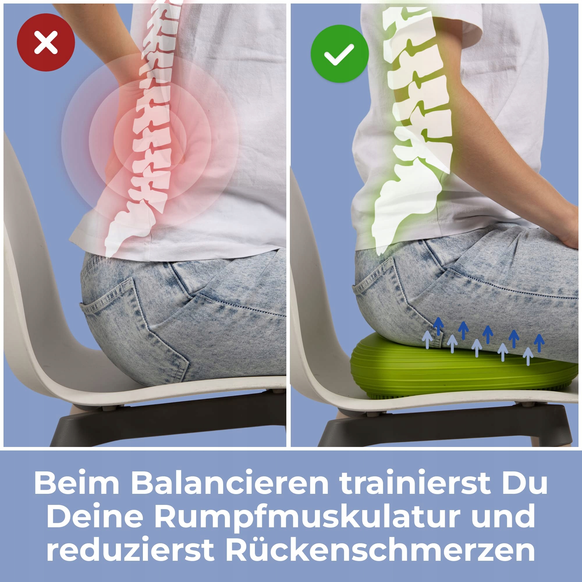 TERAPIA PRZECIW BÓLOM PLECÓW - Podkładka do równowagi wzmacnia centrum ciała. Wzmocnione centrum ciała jest jednym z warunków zwalczania bólu pleców.