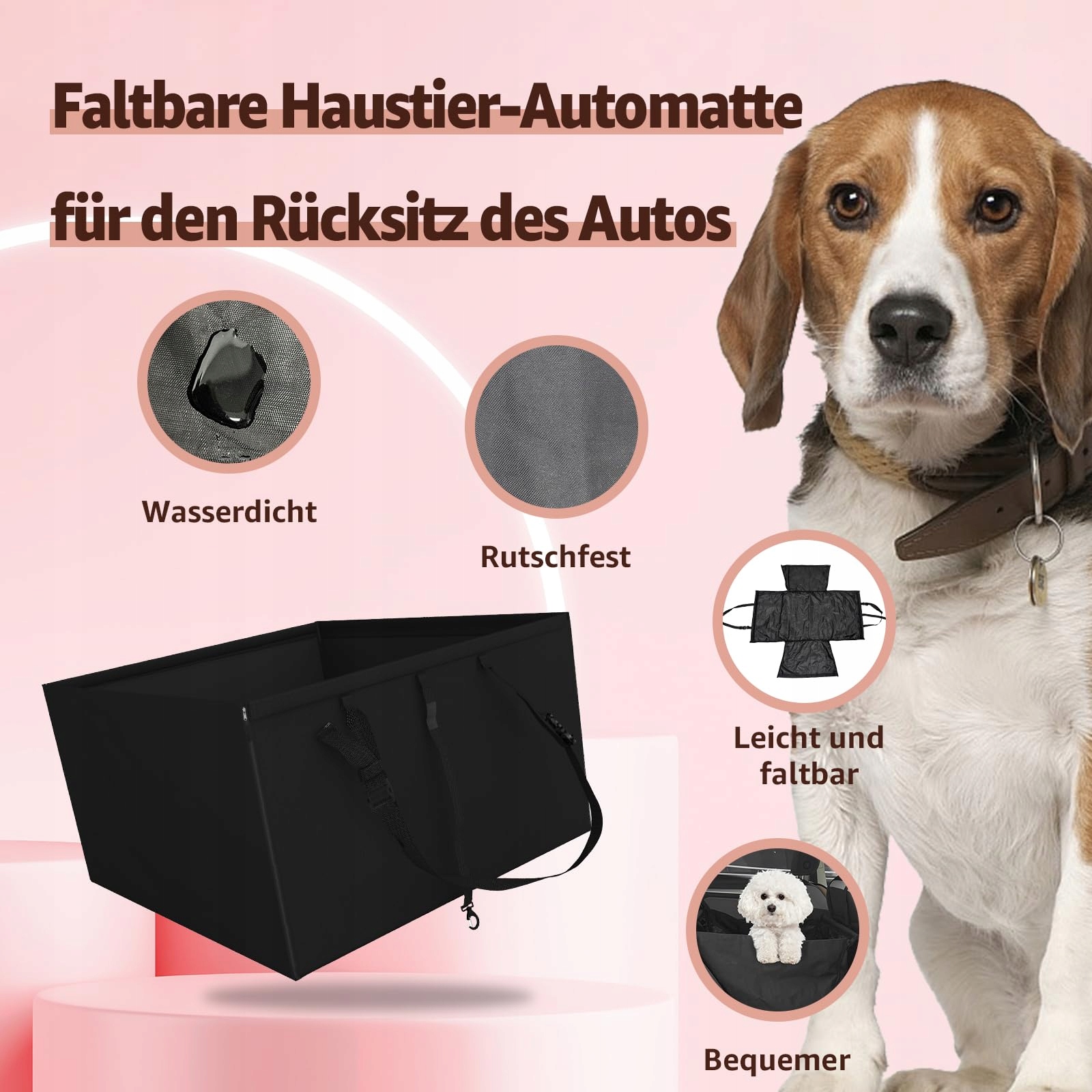 Idealny rozmiar i praktyczny design: Po rozłożeniu fotelik samochodowy dla psów ma wymiary 50 cm długości, 44 cm szerokości i 32 cm wysokości. Idealny dla małych do średnich psów i pasuje do różnych modeli samochodów.