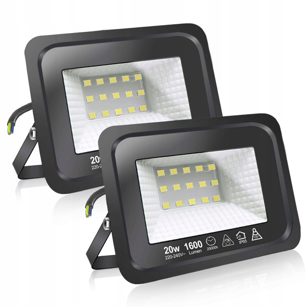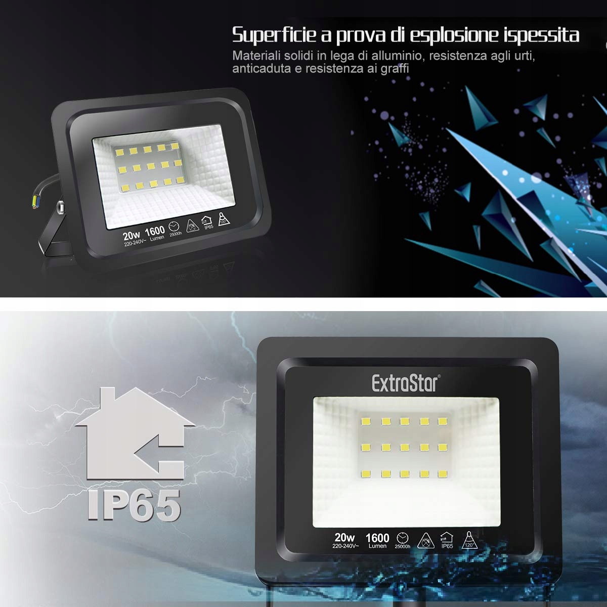 EXTRASTAR 20W LED Reflektor, Superjasny Led Reflektor Zewnętrzny, IP65 Wodoodporny LED Naświetlacz, 6500K Ciepła Biała Lampa Reflektorowa, reflektor zewnętrzny 2 sztuki