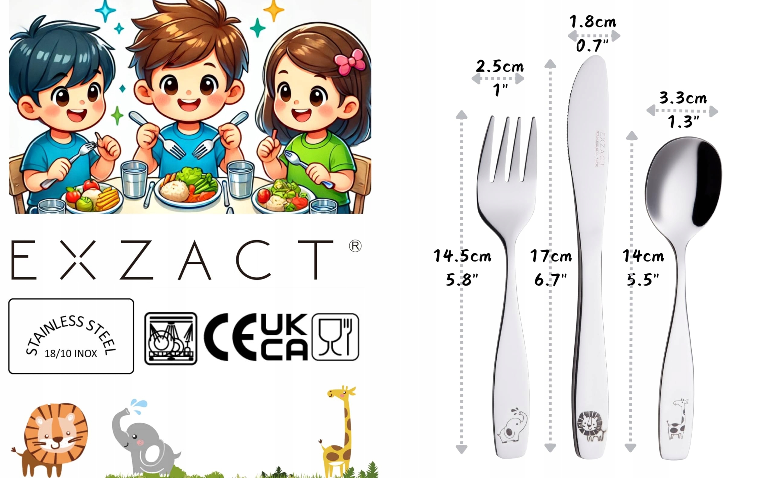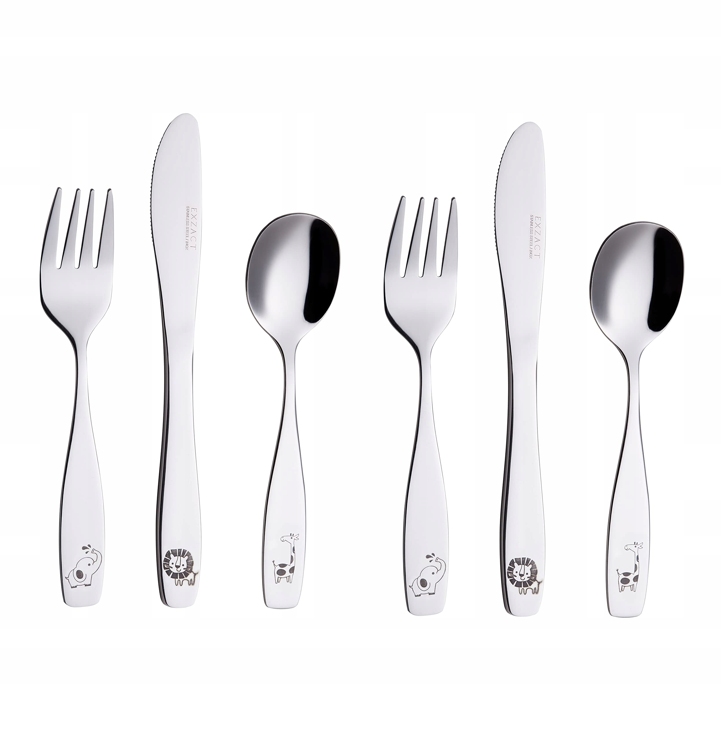 EXZACT Sztućce Dla Dzieci 6 Sztuk Stal Nierdzewna Safari Zwierzęta | Premium Supply