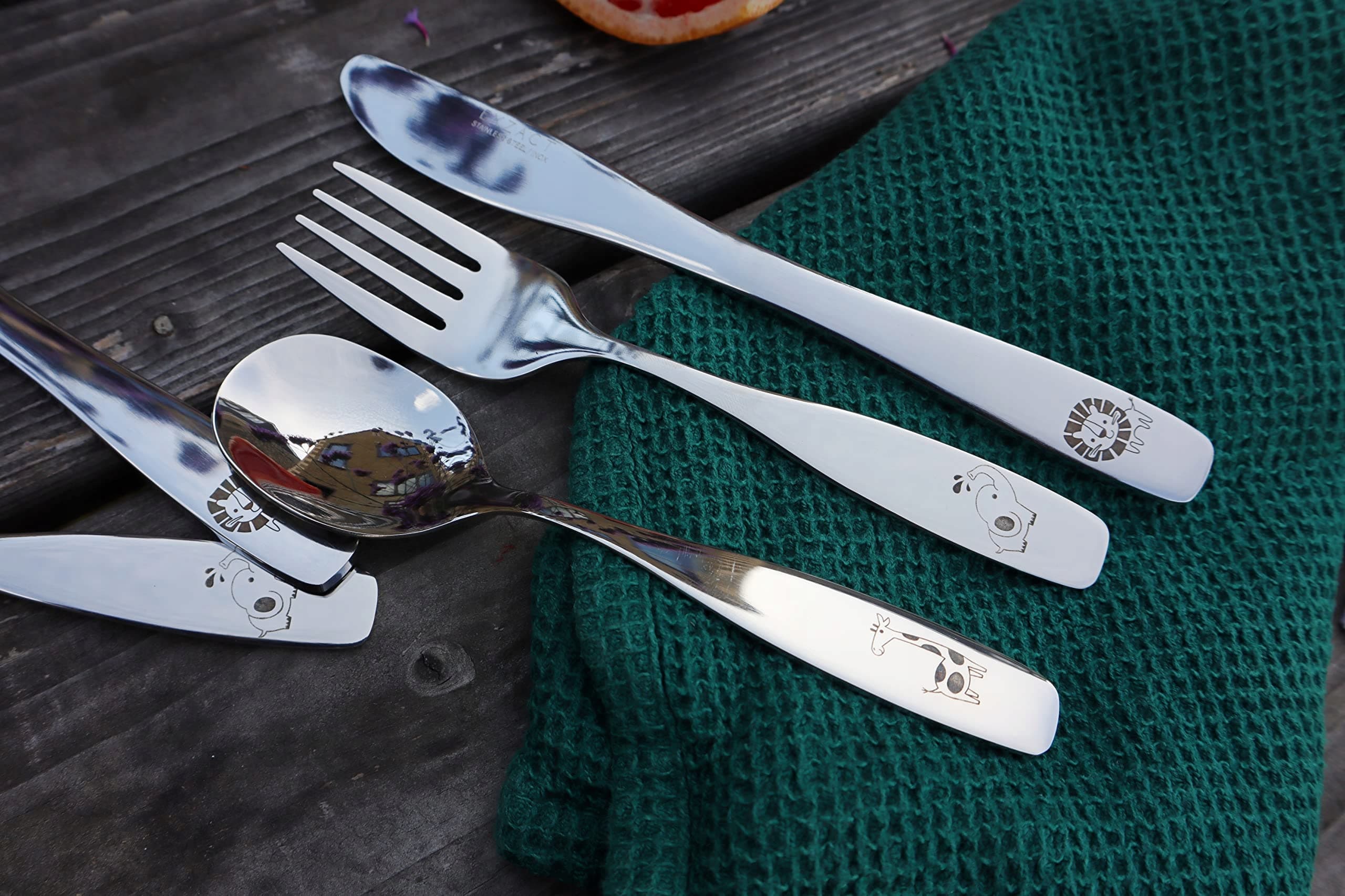 EXZACT Sztućce Dla Dzieci 6 Sztuk Stal Nierdzewna Safari Zwierzęta