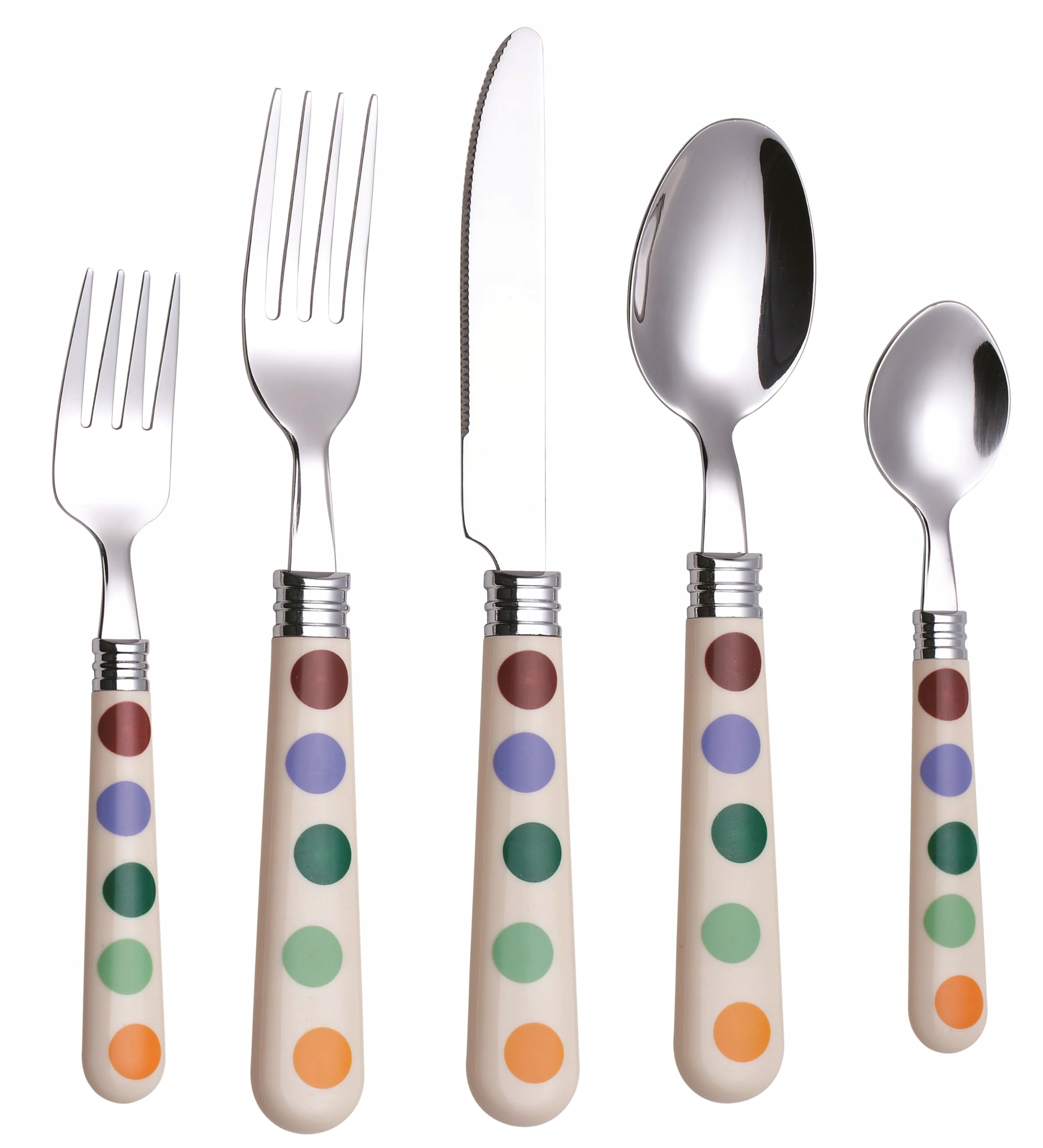 Żywy wzór w kropki polka – Wprowadź kolor na stół dzięki 20-częściowemu zestawowi sztućców EXZACT – zabawne, kolorowe kropki przynoszą radość podczas codziennych posiłków i wyjątkowych okazji.