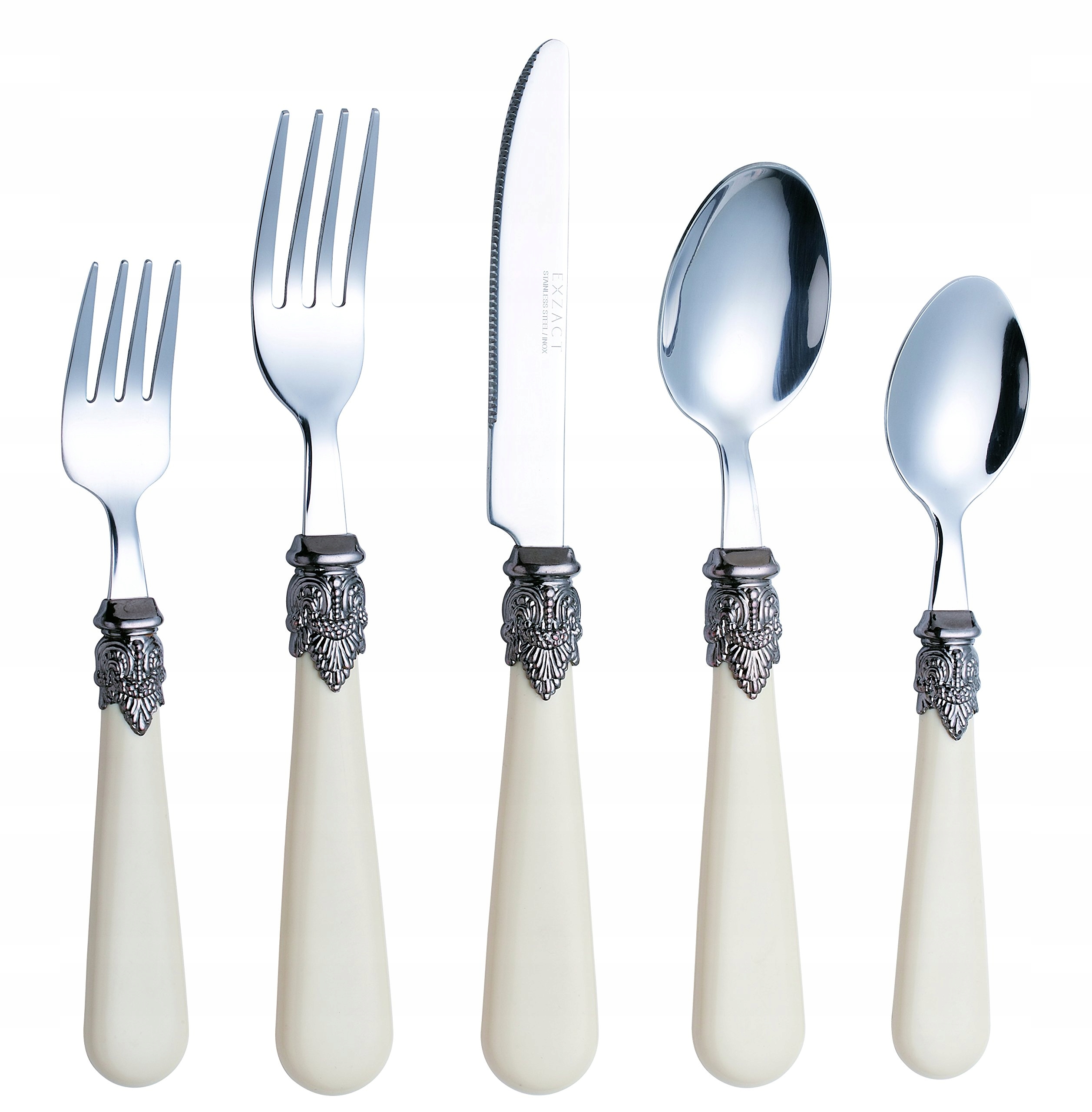 EXZACT Zestaw sztućców krem kości słoniowej 20 części, stal nierdzewna z detalicznym uchwytem, tradycyjny, elegancki, styl vintage/antyczny