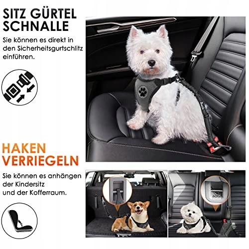[Wygodny i Łatwy w Użyciu]: Pas bezpieczeństwa jest przymocowany do zamków w fałdzie tylnego siedzenia każdego pojazdu bezpośrednio do ramy pojazdu, można go łatwo zdjąć lub pozostawić przymocowany. Alternatywnie można go również łatwo wpiąć w zamek pasa samochodowego i przymocować do uprzęży psa za pomocą metalowej klamry szybkiego zwalniania.