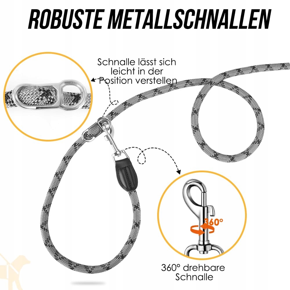 Trwała i bezpieczna --- Z całkowitą długością 3 m i grubością 12 mm, podwójna smycz jest wykonana z wytrzymałego nylonowego materiału. Metalowe haki na obu końcach i trzy klamry w kształcie ∞ w środku są wykonane z metalu, aby nie pękały pod naciskiem i zwiększały bezpieczeństwo Twojego psa. Obrót haków o 360 stopni na obu końcach zapobiega plątaniu się. Odblaskowe szwy sprawiają, że jest to doskonały wybór do używania w nocy.
