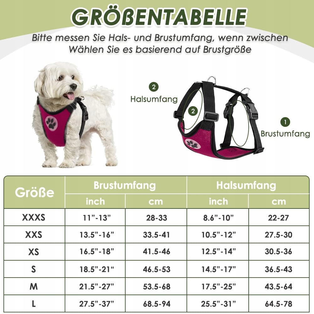 [Wiele opcji rozmiarów] Każdy pies jest wyjątkowy i chcemy upewnić się, że każdy znajdzie idealne dopasowanie, więc prosimy o zmierzenie psa przed zakupem! Zalecane rasy: Małe do średnich rasy, takie jak Yorkshire Terrier, Pomeranian, Papillon, Chihuahua, Toy Pudel, Klee Kai, Jack Russell i Bichon Frise.