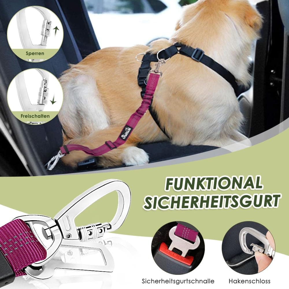 [2 w 1 projekt do uniwersalnych zastosowań] Nasz 2-w-1 pas bezpieczeństwa posiada blokowany karabińczyk, który zapewnia uniwersalną kompatybilność z większością pojazdów. Przymocuj go do zamka lub pręta zagłówka, gdy tradycyjny pas bezpieczeństwa nie jest kompatybilny z klamrą samochodową.