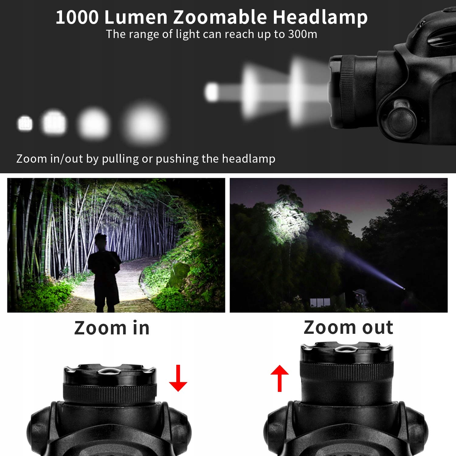 [Regulowany kąt 90º i możliwość zoomu]Możesz przechylić głowicę o 90º w dół, aby unikać szczelin i przeszkód; możesz zmieniać ogniskowanie z szerokiego oświetlenia na wąskie oświetlenie o dużym zasięgu.