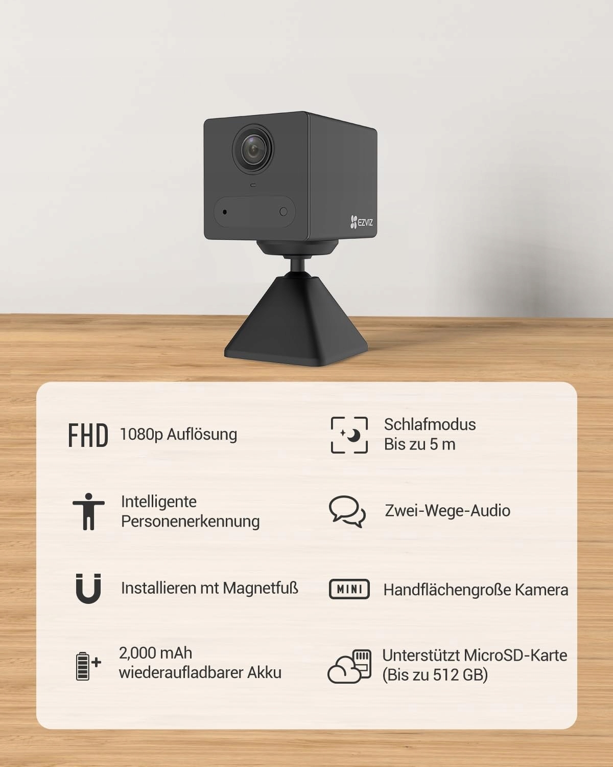 EZVIZ Akumulatorowa kamera monitorująca WLAN wewnętrzna, 1080p bezprzewodowa kamera IP WLAN z baterią 2000mAh, detekcja osób PIR, nocne widzenie IR i audio dwukierunkowe, obsługuje kartę SD do 512 GB, CB2 czarna