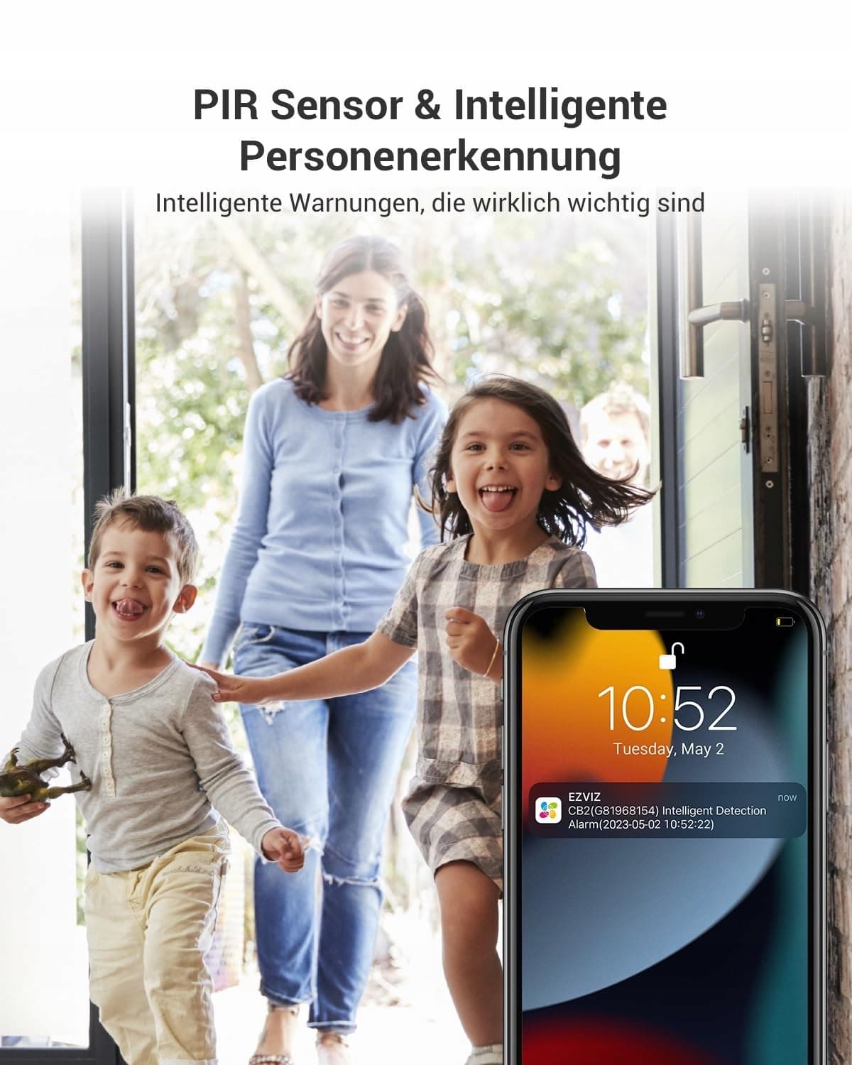 Detekcja osób i inteligentne powiadomienia: Nie chcesz być zbyt często niepokojony powiadomieniami o mało istotnych aktywnościach? Czujnik PIR i algorytmy AI do wykrywania ludzkich kształtów współpracują, aby lepiej odróżnić osoby od innych poruszających się obiektów.