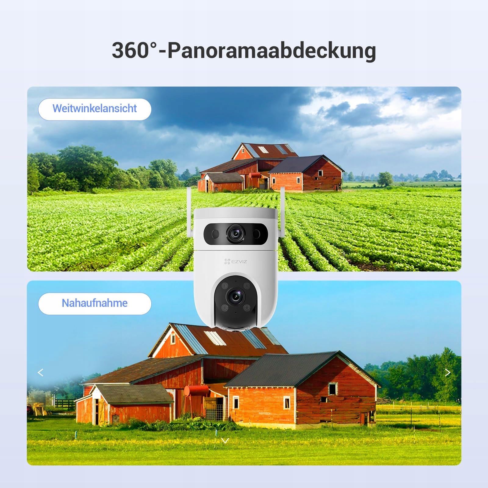 EZVIZ 3K+3K Dual Pan & Tilt WLAN Kamera, Kamera do monitoringu zewnętrznego z rozpoznawaniem osób i pojazdów opartym na sztucznej inteligencji, inteligentnym śledzeniem, kolorowym widzeniem nocnym i odpornością na warunki atmosferyczne, H9c 5MP