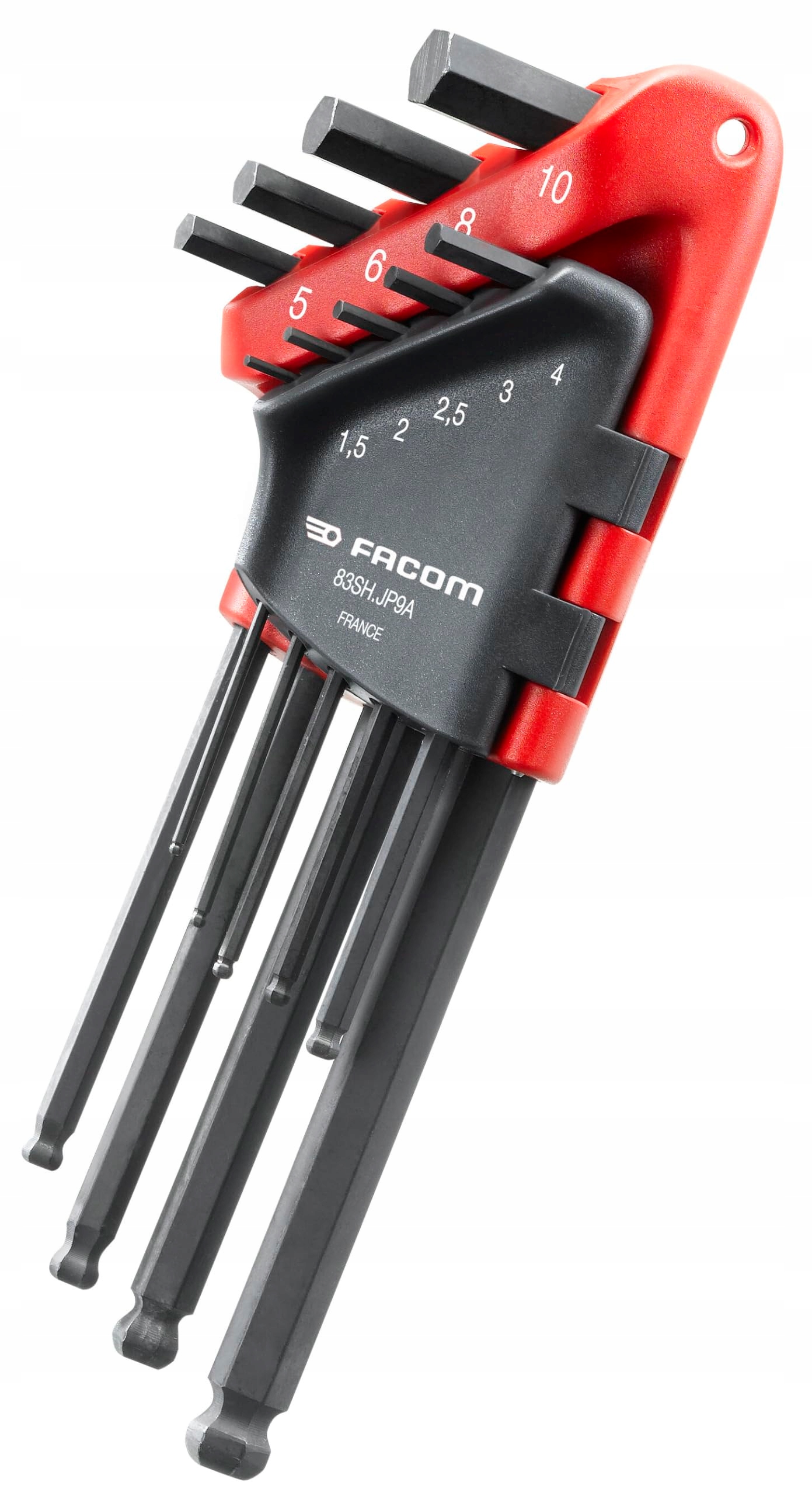 FACOM 9-częściowy zestaw kluczy sześciokątnych 83SH.JP9A (1,5/2/2,5/3/4/5/6/8/10 mm, długie klucze z kulistym końcem, do prac śrubowych w przemyśle i rzemiośle, w tym uchwyt do przechowywania)