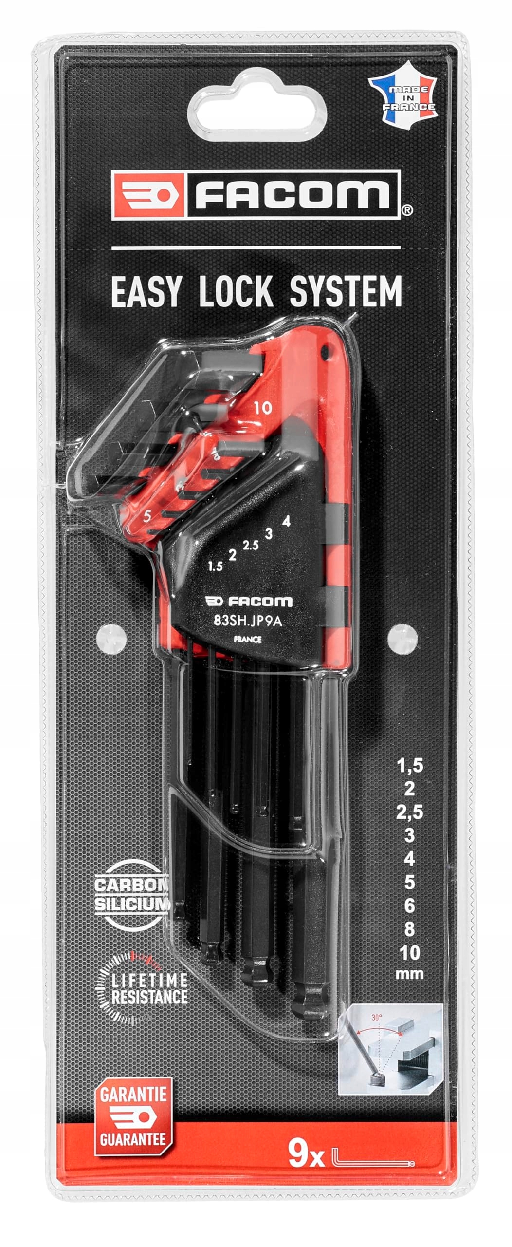 Zakres dostawy: 1x FACOM 9-częściowy zestaw kluczy sześciokątnych, długa wersja, z kulistym końcem, w tym uchwyt z systemem Easy Lock