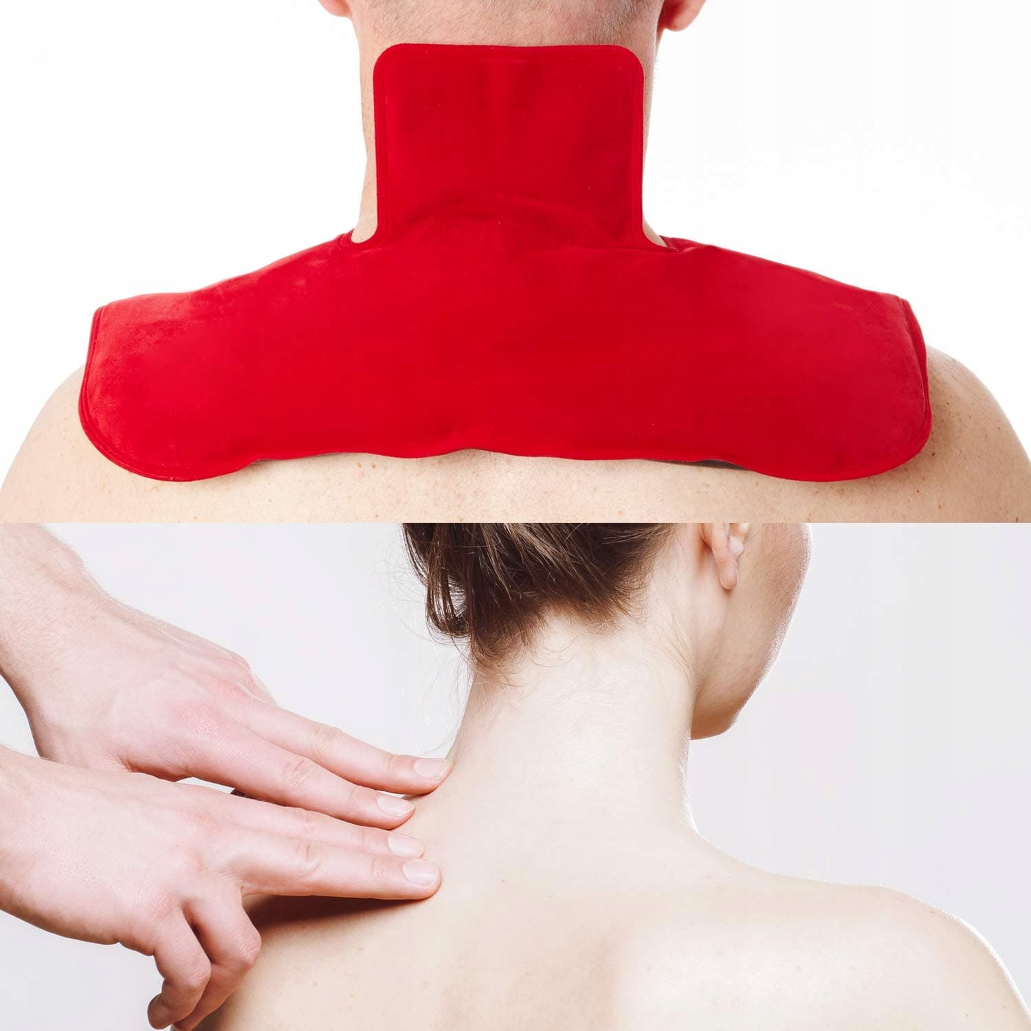 ZESTAW: Otrzymujesz 1 wysokiej jakości elastyczną poduszkę na szyję z naturalnym żelem torfowym pokrytą z jednej strony czerwoną welurową folią flokowaną i plastikową powłoką z szerokim oparciem na ramiona - poduszka do relaksu przeznaczona zarówno do terapii cieplnej, jak i chłodzenia