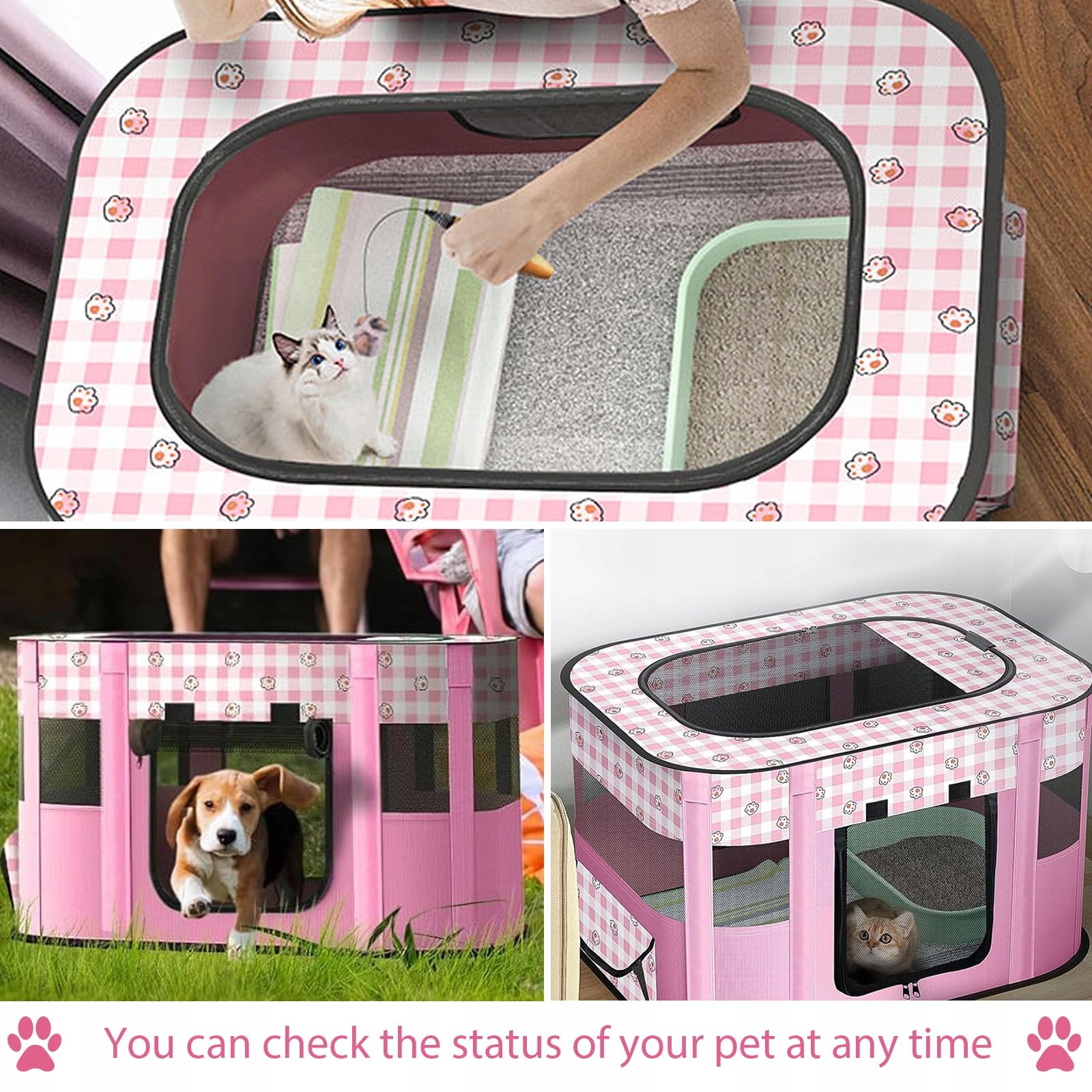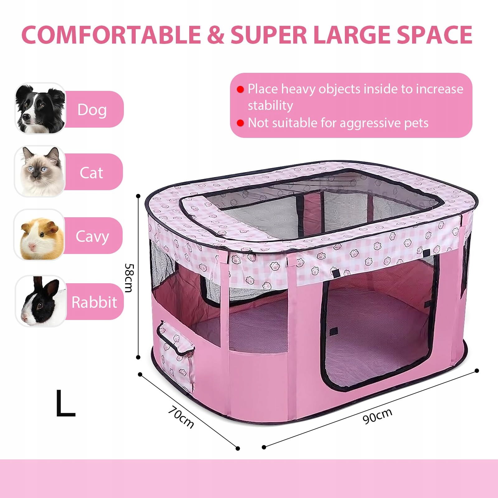 Składane ogrodzenie dla psów, kojec dla szczeniąt, przenośny kojec dla szczeniąt, kojec dla szczeniąt do wnętrz, składany wybieg dla kociąt, szczeniąt, królików, L (Różowy)
