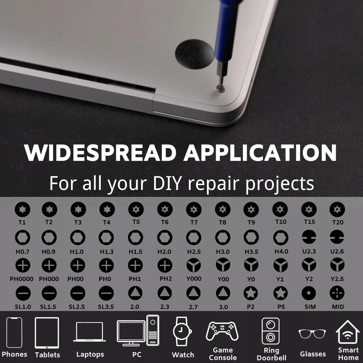 【Wszechstronne zastosowanie】Niezależnie od tego, czy naprawiasz iPhone'a, iPada, MacBooka, komputer, laptop, tablet, PC, smartfon, zegarek, PS4, PS5, Switch, Xbox czy nawet okulary, ten zestaw wkrętaków jest dla Ciebie odpowiedni.