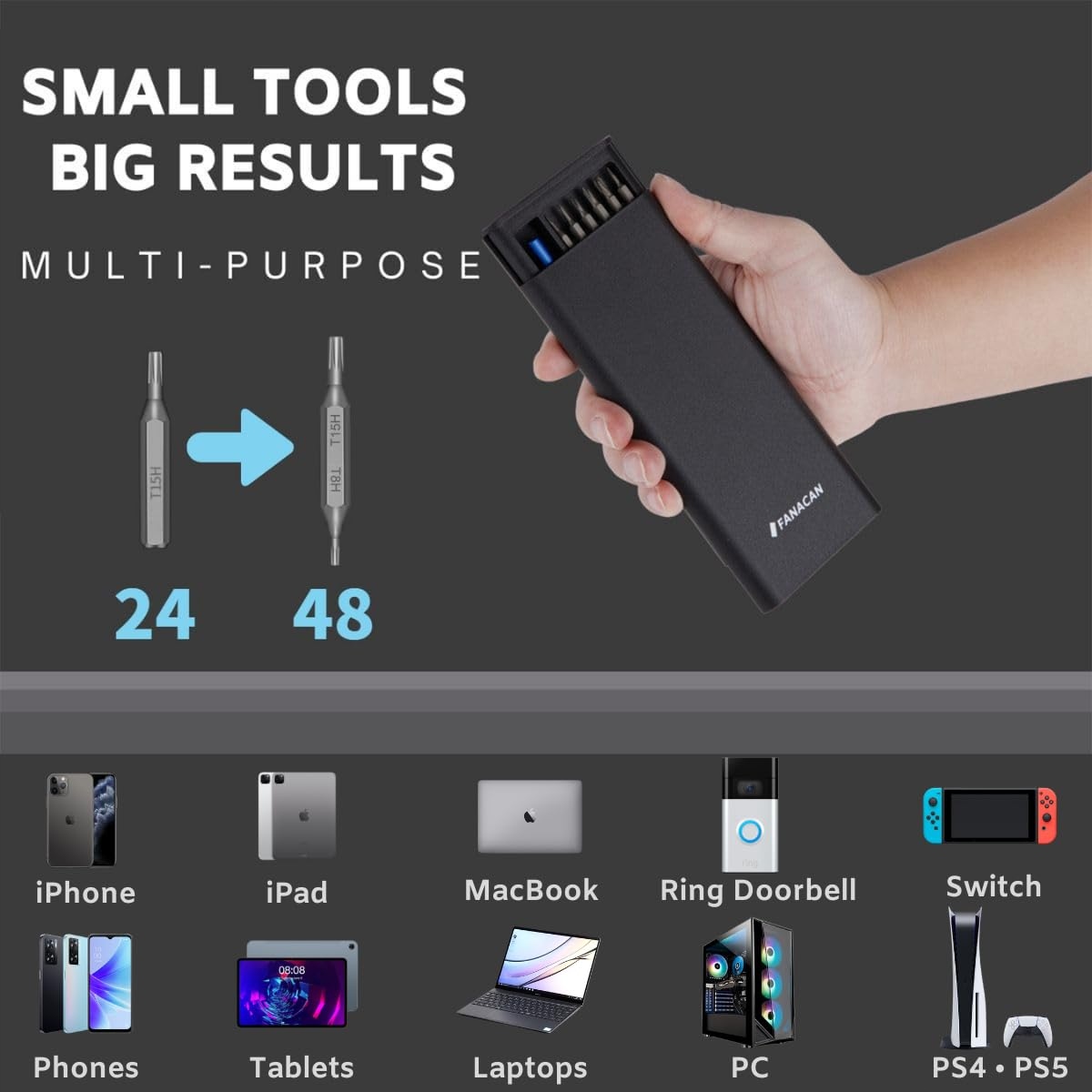 Zestaw precyzyjnych wkrętaków FANACAN, mini wkrętaki, elektroniczny zestaw narzędzi do naprawy iPhone'a, iPada, MacBooka, komputera, laptopa, telefonu, tabletu, PS4, PS5, Nintendo Switch