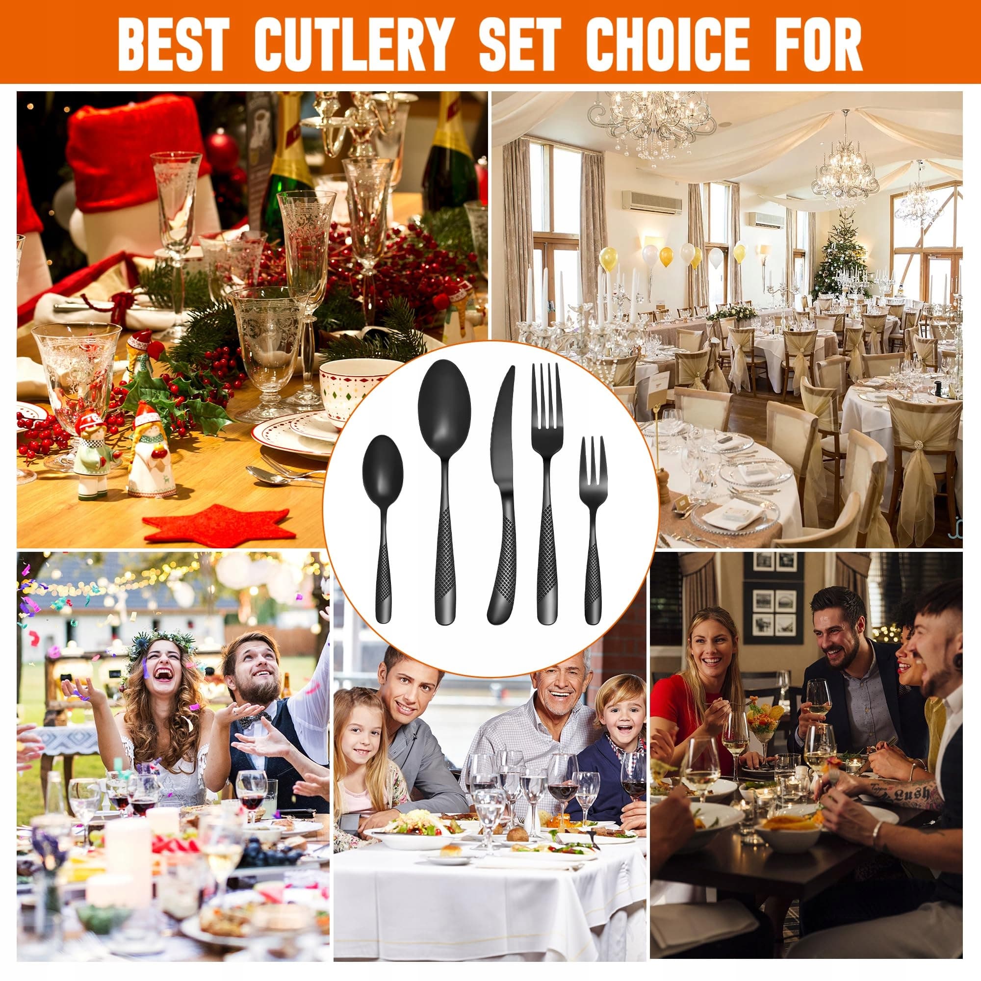 20-częściowy zestaw sztućców dla 4 osób: 20-częściowy zestaw sztućców FANTICDE zawiera 4 noże do steków, 4 widelce do jedzenia, 4 łyżki do zupy, 4 łyżeczki i 4 widelce do deserów. To idealny wybór do codziennego użytku, hoteli, restauracji, przyjęć, imprez, bufetów, małych pubów, na kemping i pikniki.