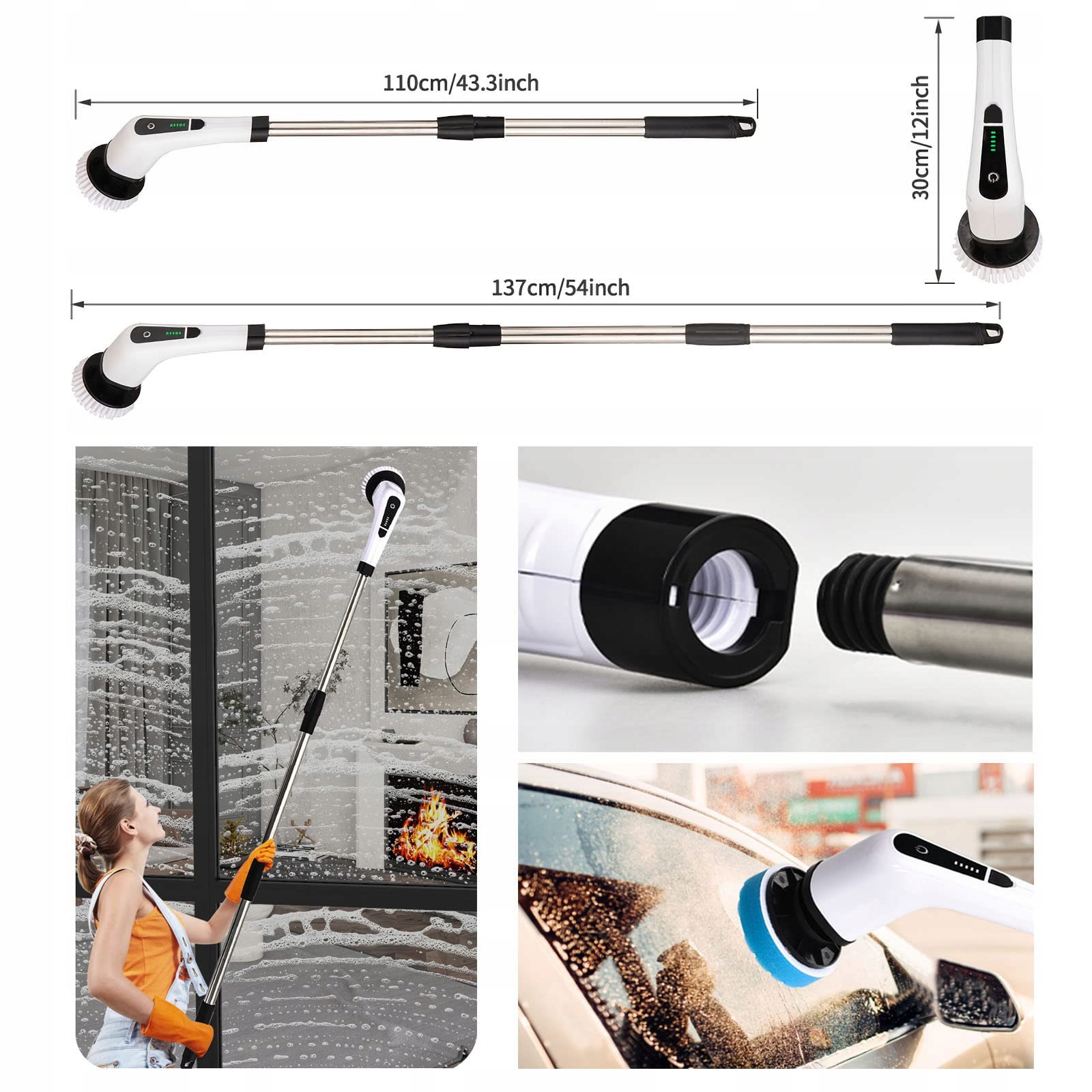 [W zestawie szczotka ręczna i długi przedłużacz dla wszechstronności] - Dodatkowy przedłużacz szczotki do czyszczenia można regulować na długość (30-137 cm), możesz dostosować szczotkę do czyszczenia do odpowiedniej dla siebie długości. Dzięki temu możesz nawet wyczyścić ścianę lub sufit w łazience. Po usunięciu przedłużacza możesz używać szczotki jako krótkiego uchwytu.