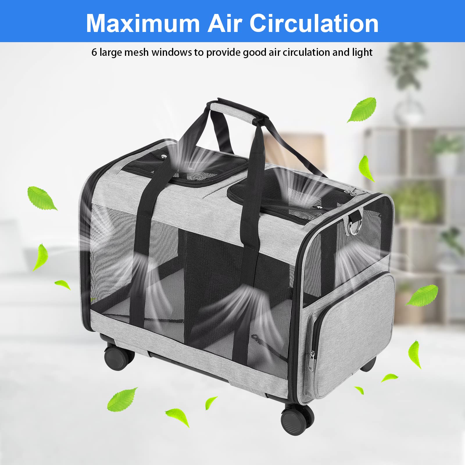 FASNATI Torba transportowa z dwoma przegrodami i odpinanym wózkiem dla kota/psa, torba na kółkach dla 2 kotów/psów, super wentylowany design, idealna na podróże/spacery/kemping, szara